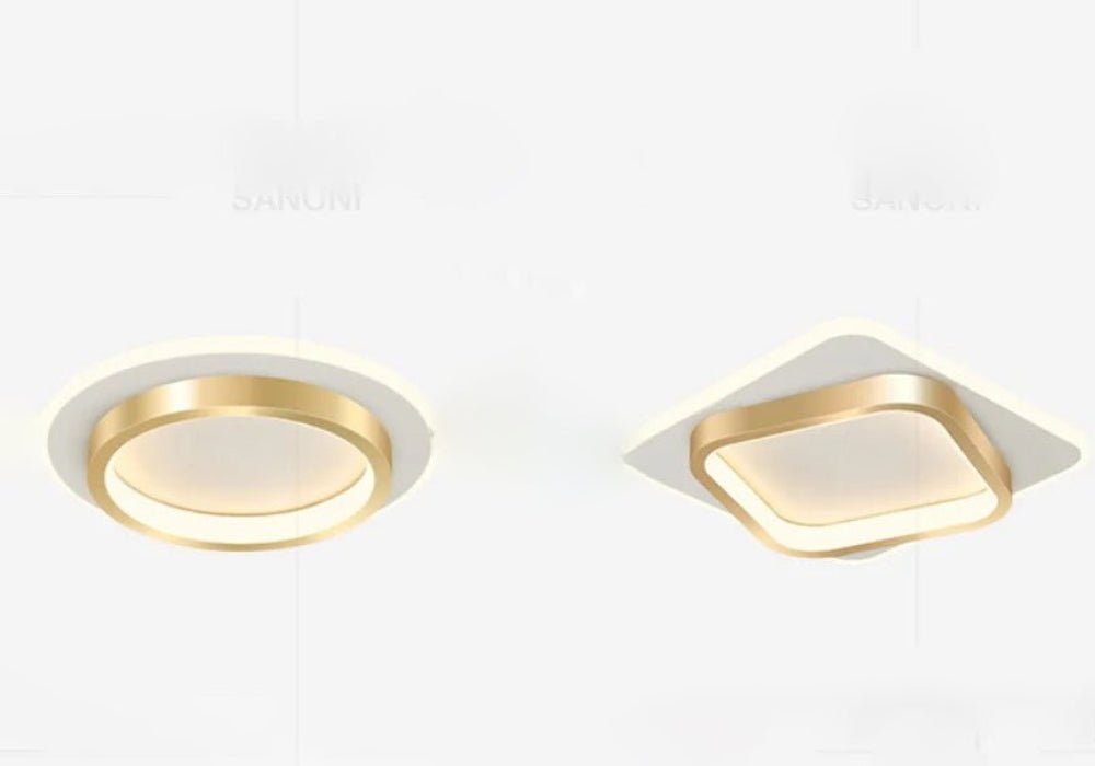 Manzil ceiling light is a modern light fixture crafted with a metal frame and acrylic panels, offering a sleek square design with rounded edges. Its wood, walnut, black, and golden tones create a warm and sophisticated aesthetic, while the layered structure adds depth and visual appeal. The central panel contrasts with the glowing outer layer, ensuring even light diffusion. Perfect for hallways, living rooms, dining areas, or bedrooms, it blends functionality and style seamlessly.