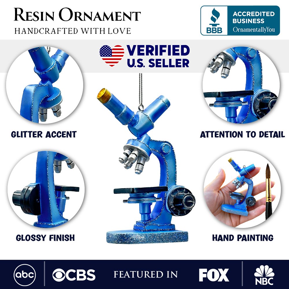 Illuminate your Christmas tree with the wonders of science using this beautifully detailed microscope ornament! Perfect for science enthusiasts, students, or dedicated lab professionals, this glittering decoration celebrates curiosity and discovery. Its vibrant blue and metallic accents add a modern yet festive touch, making it an ideal gift for scientists or anyone passionate about exploration. Showcase your love for STEM this holiday season with a unique piece that blends holiday spirit and scientific charm 🔬🎄