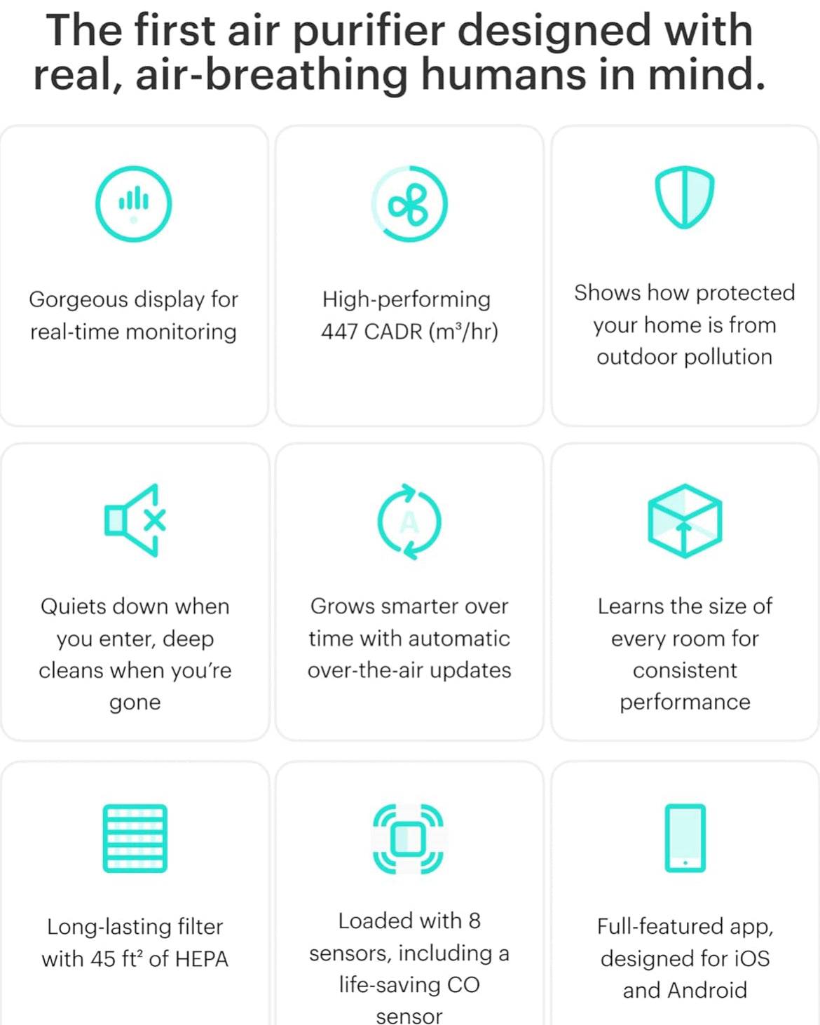 Mila Air Purifier for Large Room 1,000 sqft Coverage | Basic Breather | Air Purifier for Allergies | H12 HEPA Filter | Smoke Allergens Dust Pollution | Home Office Air Cleaner | Smart Wi-Fi Auto Mode