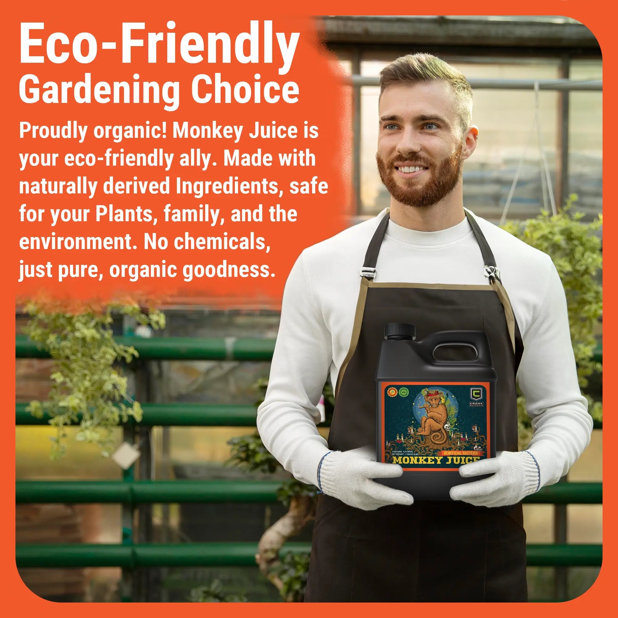 Monkey Juice is an organic plant additive made with two powerful strains of beneficial bacteria - Bacillus subtilis and Bacillus licheniformis. It's designed to enhance soil health, optimize plant growth, and boost plant resistance against diseases, pests, and environmental stressors.