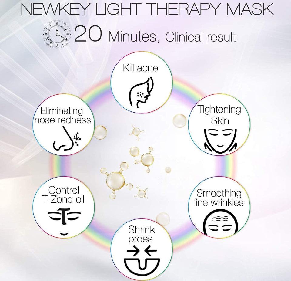 Fed up of acne,dull skin? NEWKEY red blue light therapy mask for face, a natural treatment that utilizes the same technology via the dermatologist to treats mild to moderate inflammatory acne,reverse the process of aging,and uneven skin tone etc.Say farewell to stubborn acne flare-ups,revealing clear,glowing skin.