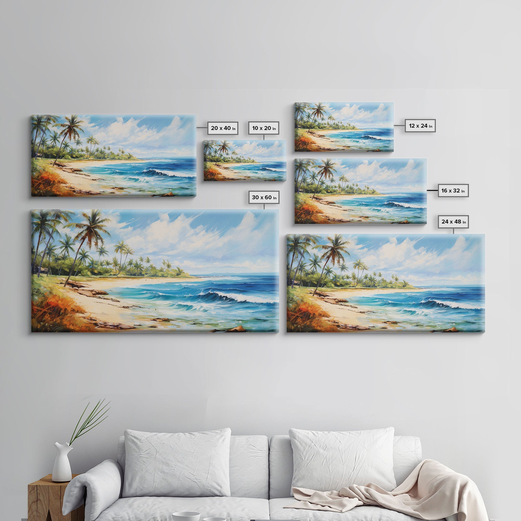 *Optional frames add a total of 1.5 inches to each dimension, for example a 10x20 canvas with a frame will be 11.5 by 21.5 inches total. All framed canvas are 1.5" total depth.