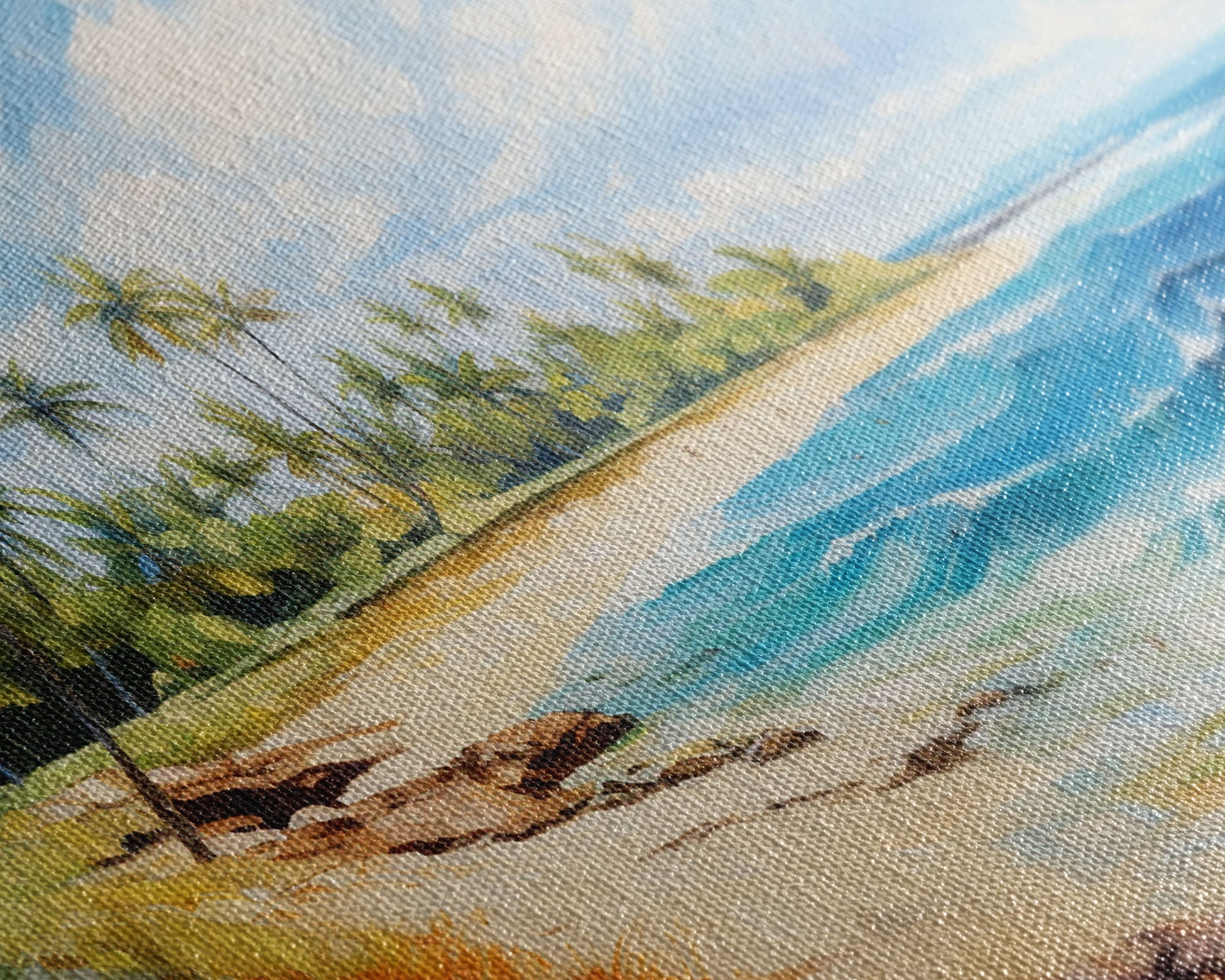 Most of our canvases are made in the USA, with the exception of canvases ordered with the light oak unstained frames, and any large canvases (24x48, 30x60, 16x48 and 20x60) ordered WITH a frame. These are temporarily made in and shipped from Europe, while we try to find a more consistent supplier in the USA.