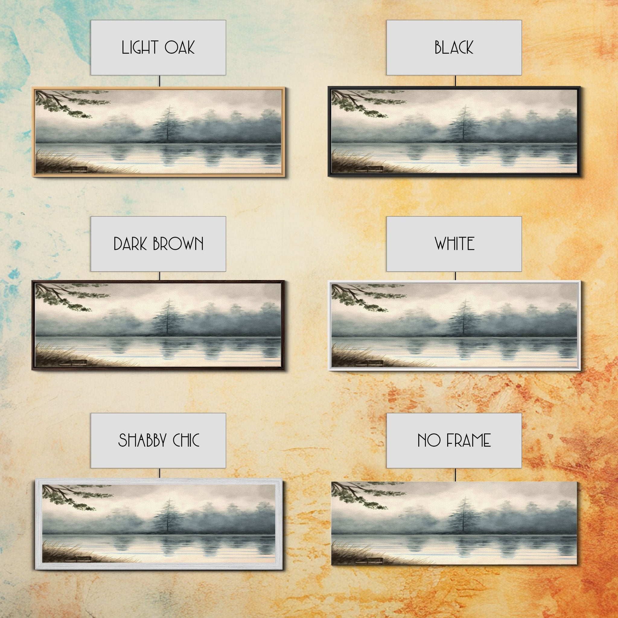 Panoramic Framed Canvas Print of Misty Fog Covered Lake and Pine Tree Forest, Perfect for Living Room, Bedroom, Fog Covered Lake