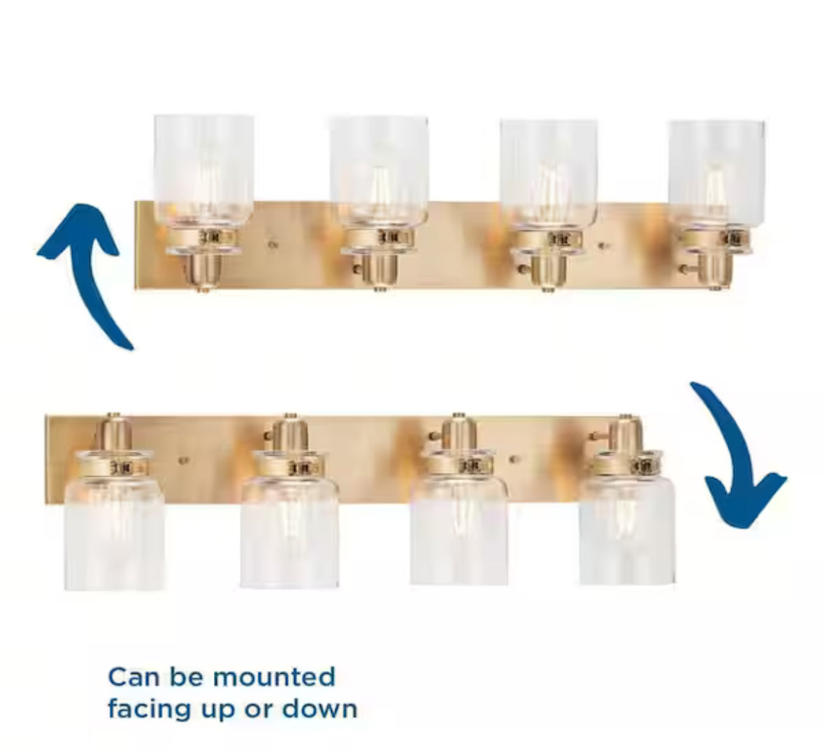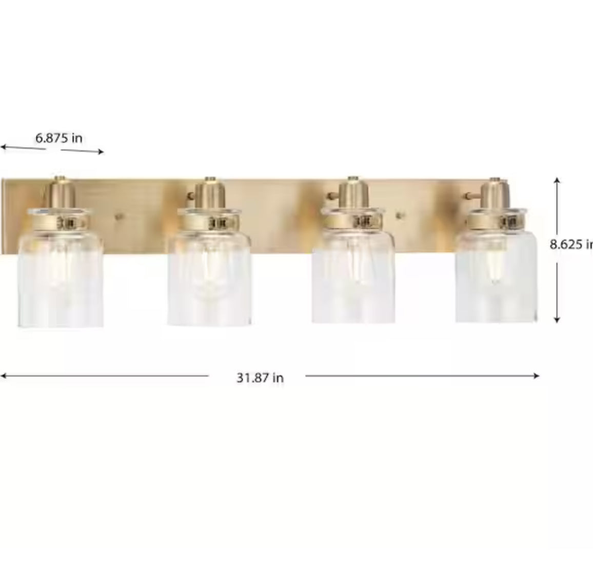 Progress Lighting Calhoun Collection 30-1/4 in. 4-Light Gold Vintage Brass Clear Glass Farmhouse Urban Industrial Bathroom Vanity Light