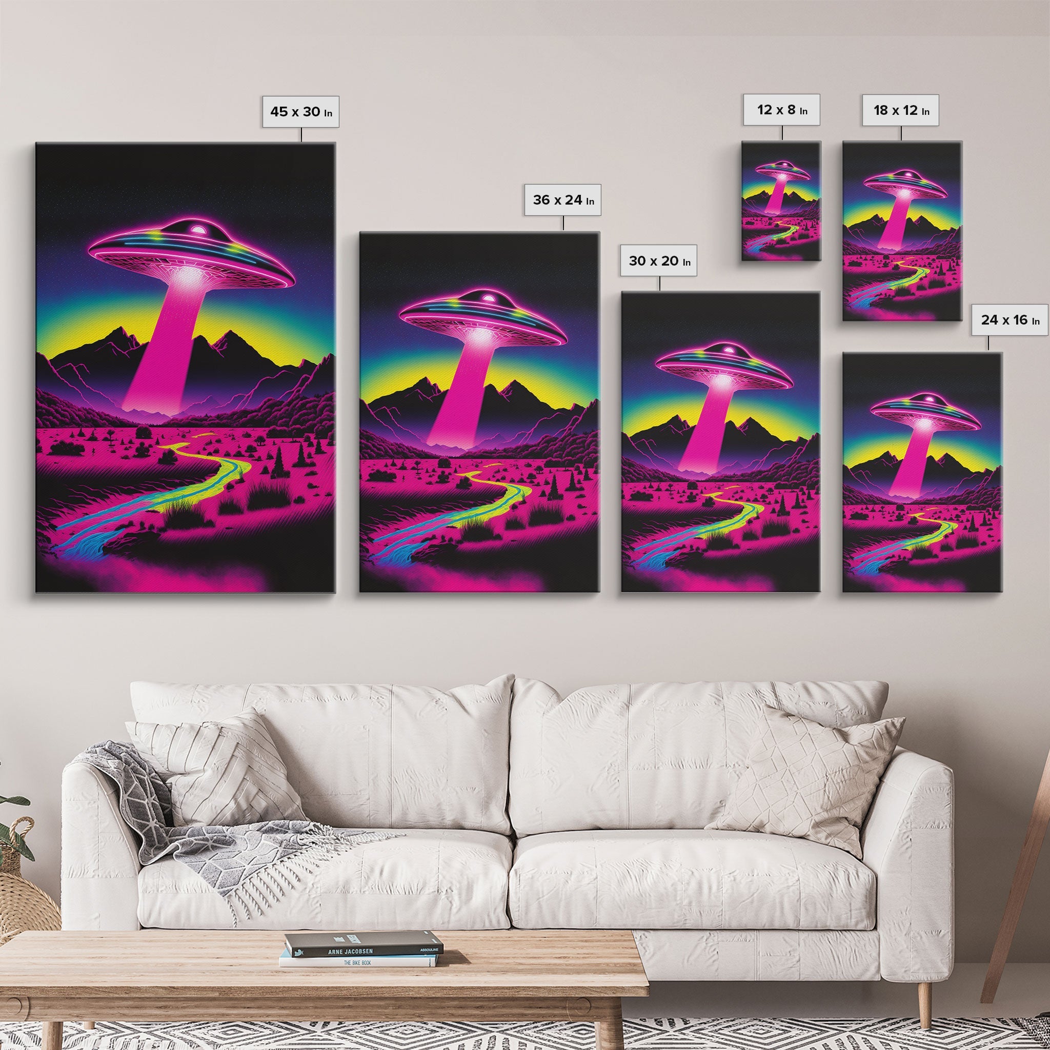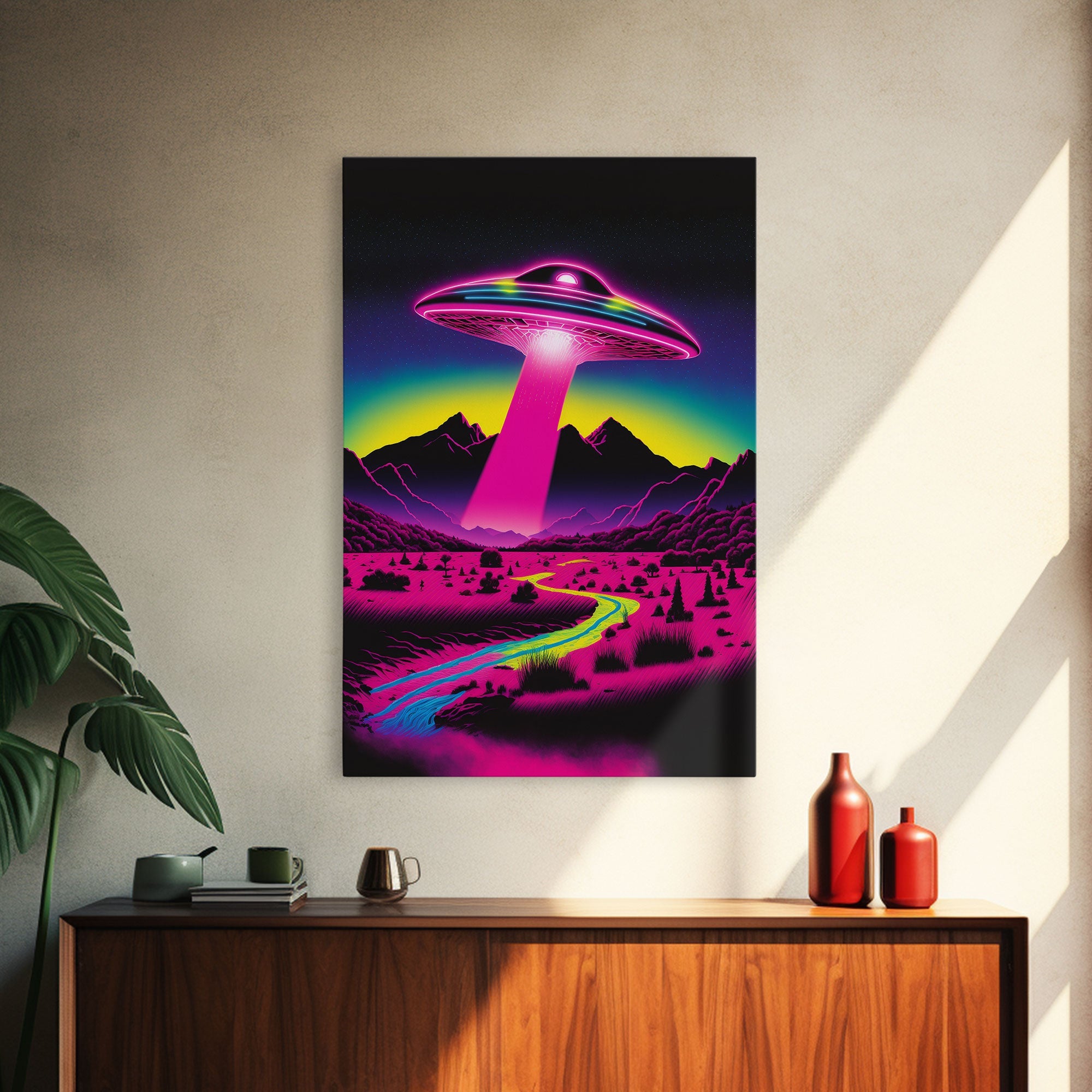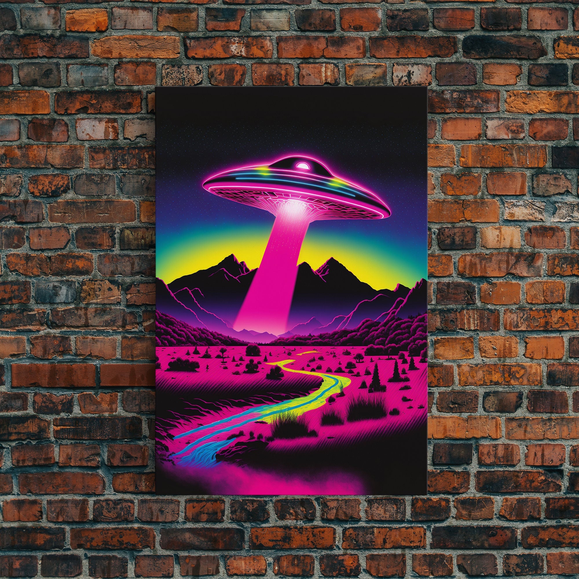 Psychedelic UFO Art, The Abduction, Retro 80s Style Scifi Art, Framed Canvas Print