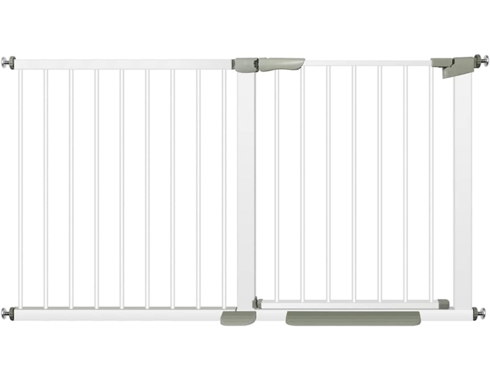 Baby gate Product Information:white baby gate is a extra wide baby gate for large openings, the width of the baby door is adjustable, The Extra high Baby gate is 30.71 in high. Metal baby door is strong and durable. Doors and extensions are combined in different sizes. Before buying a baby gate, measure the width of the interior or door of the house for the appropriate size range.