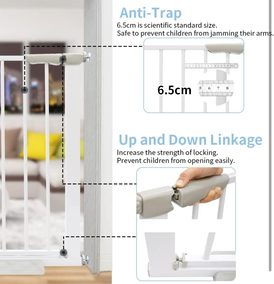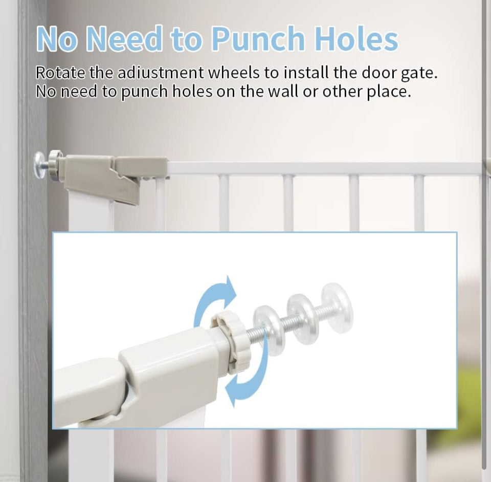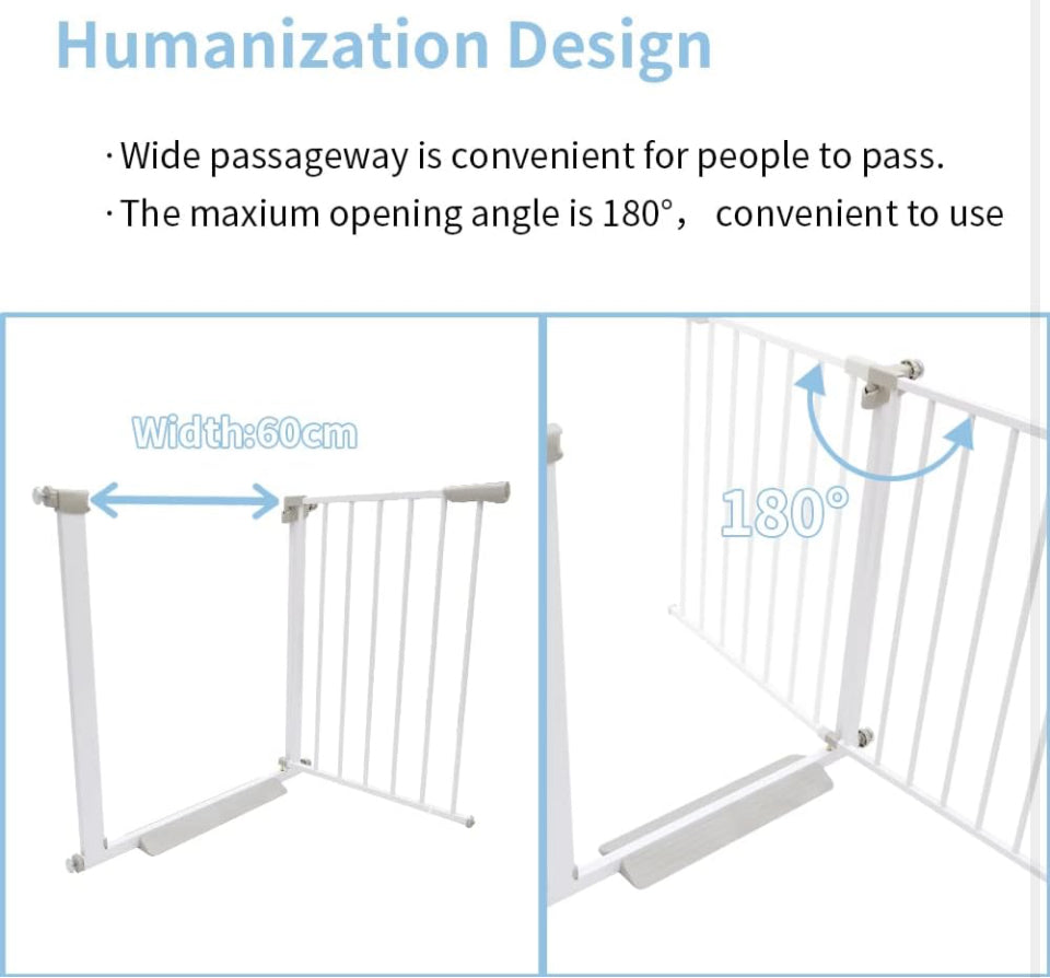This Baby gate is a extra wide and wide baby gates for large openings, and if pets walk trough the door ,the also could be use in walk through pet gate.it could be adjustable for indoors doogie gates.while the baby running around and worried about safety,you can choose this baby fence gate. And this baby gate for stairs no need drilling.