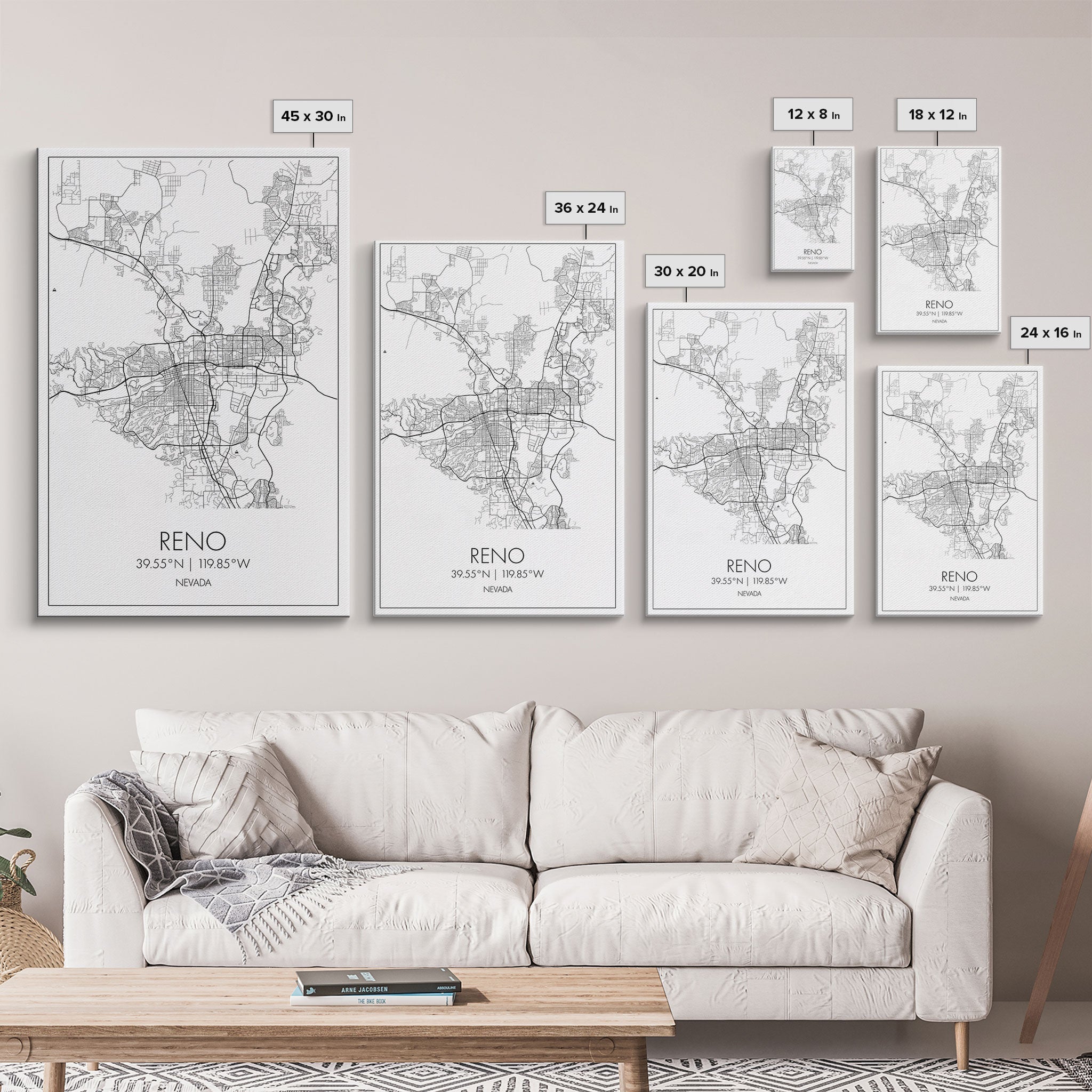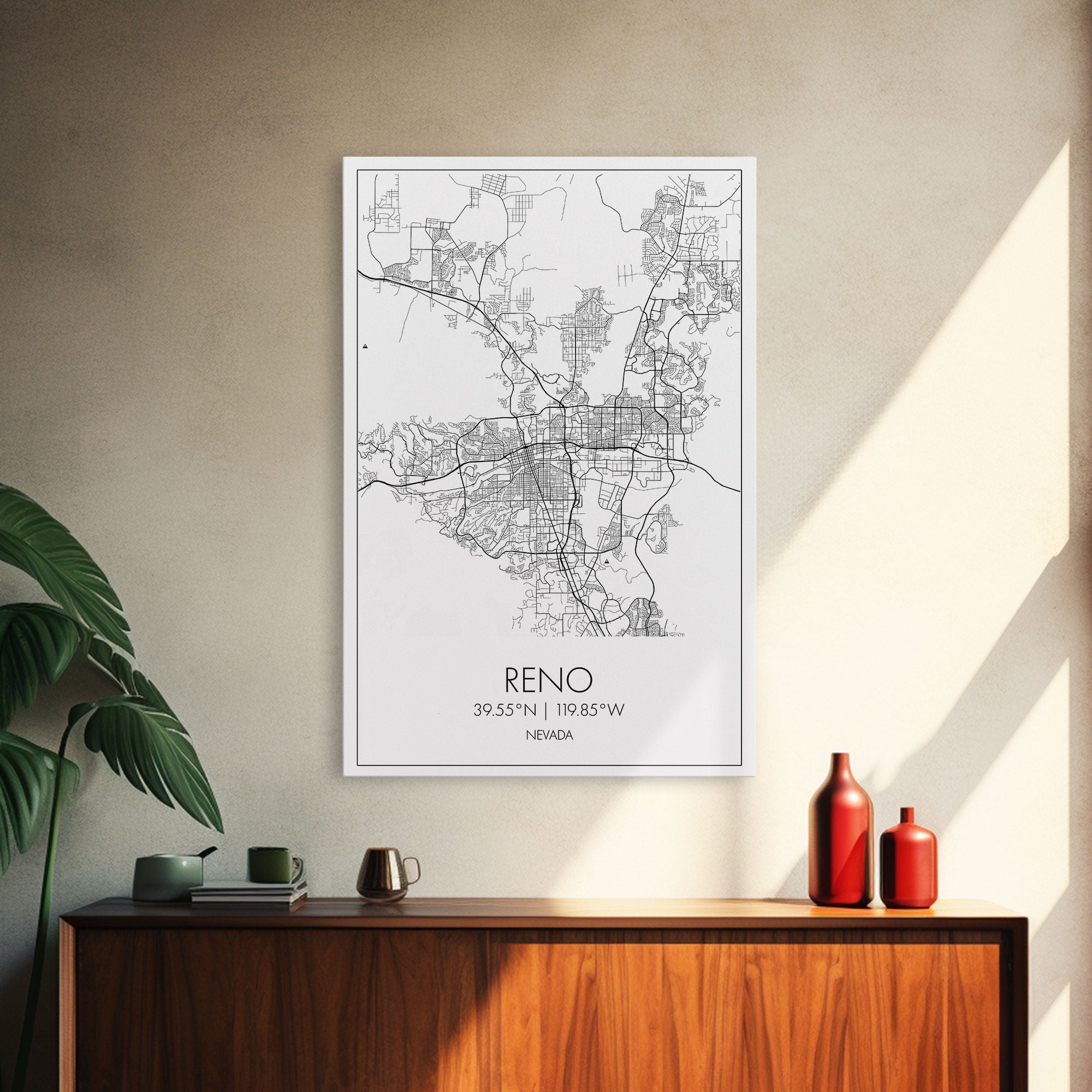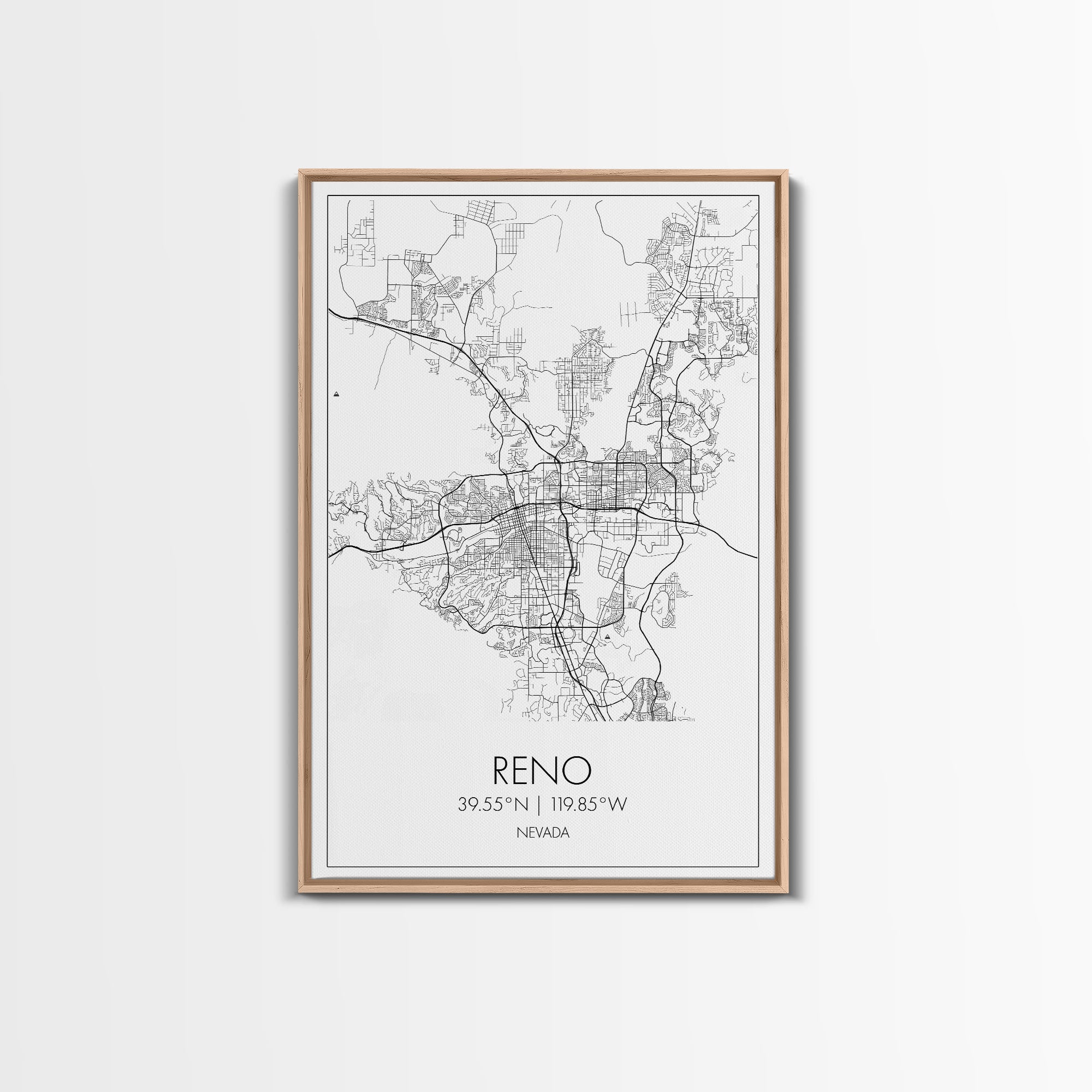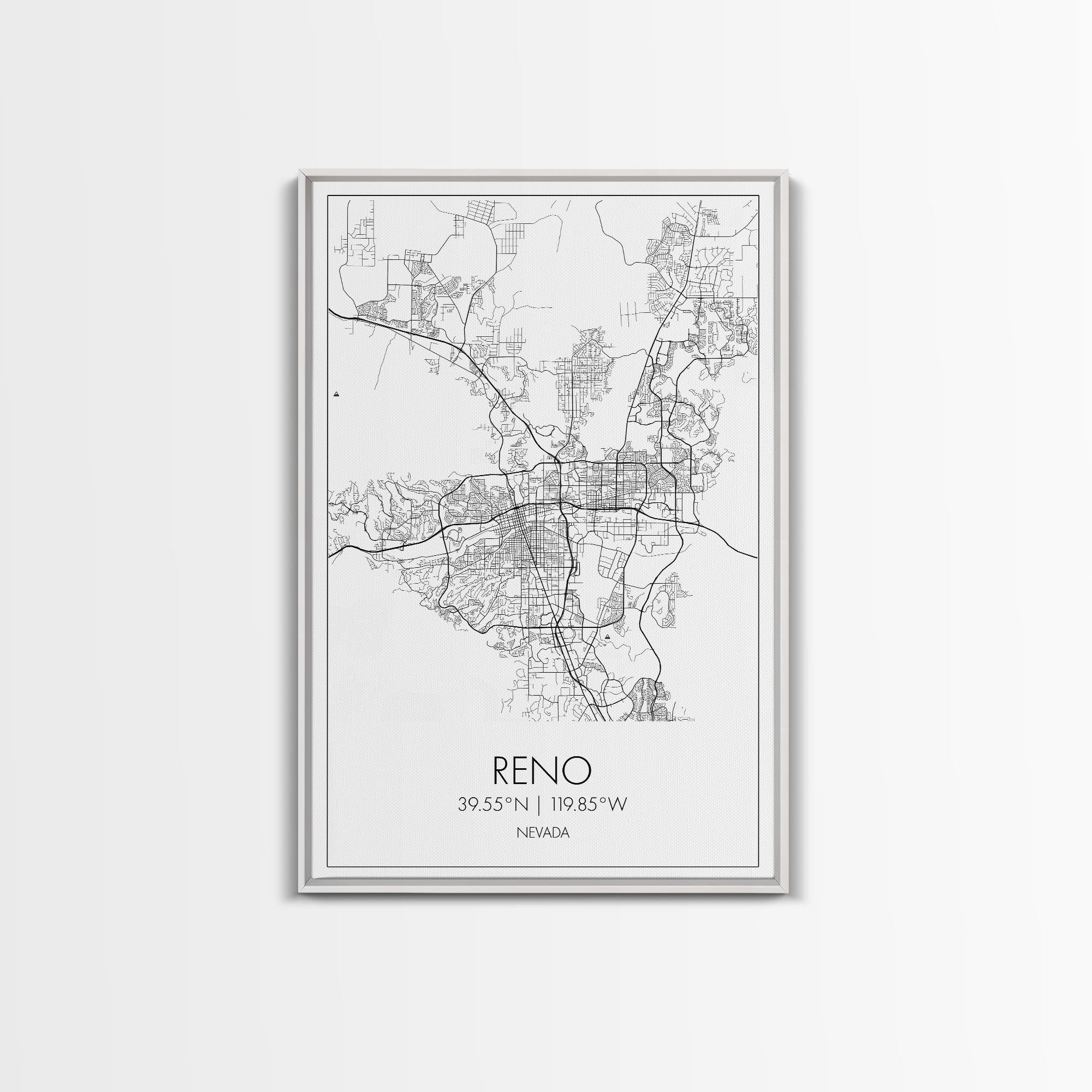Reno Street Map, Nevada Map, City Map Art, Minimalist Art, Wall Art, Canvas Print, Girls Room Décor, Traveler Gift, Travel Art Print
