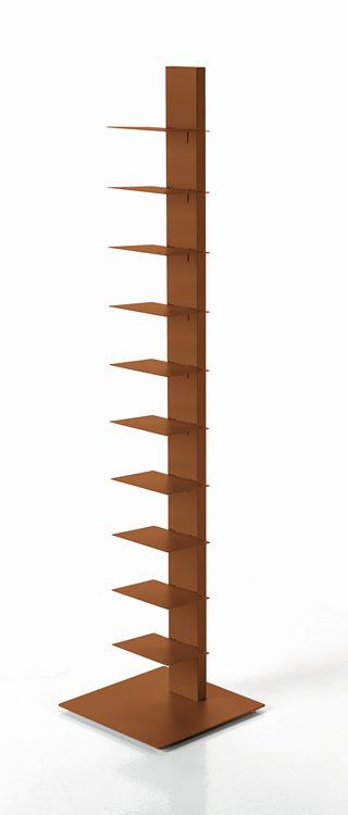 Designed by Bruno Rainaldi, the Sapiens Bookcase is constructed of a steel tube column and steel sheet shelves. Clean and minimal, a Sapiens Bookcase is a great contemporary example of form following function. We recommend a 2.5 kg (5.5 pounds) weight capacity per shelf. (The base is a solid piece of steel and can also hold books.)
