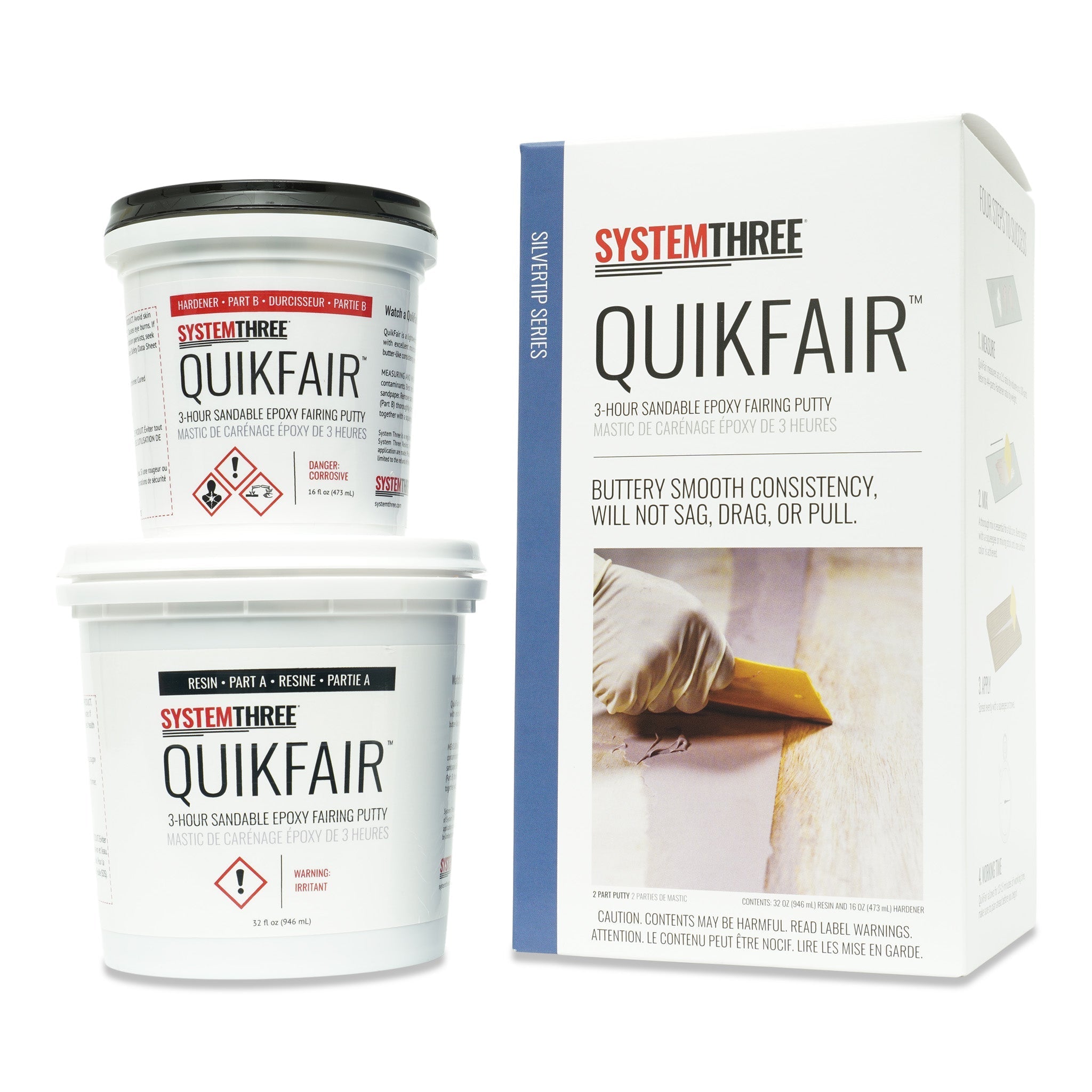 QuikFair is a lightweight, microballoon-filled, fast-curing two-part epoxy fairing putty with excellent moisture resistance. The two color-coded parts have a non-sagging, butter-like consistency and are easily mixed to form a third color.