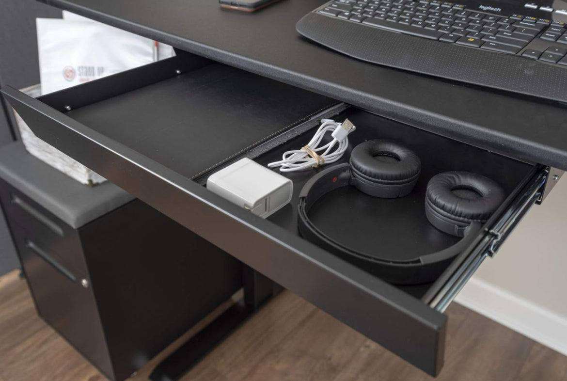 This sleek and versatile under-desk drawer storage by S Stand Up Desk Store is the perfect addition to any office space. The durable black powder-coated finish and alloy steel material ensure long-lasting use for all your pencil storage needs.