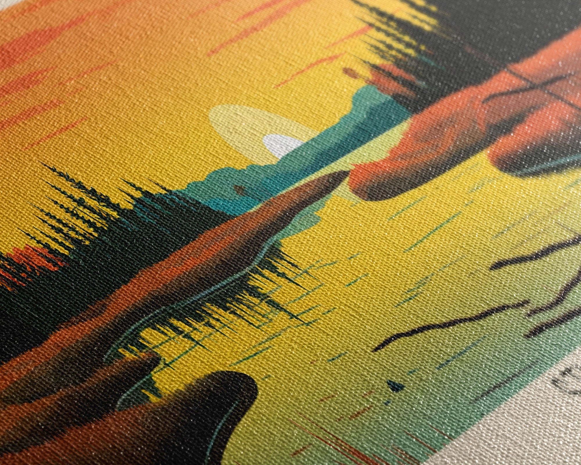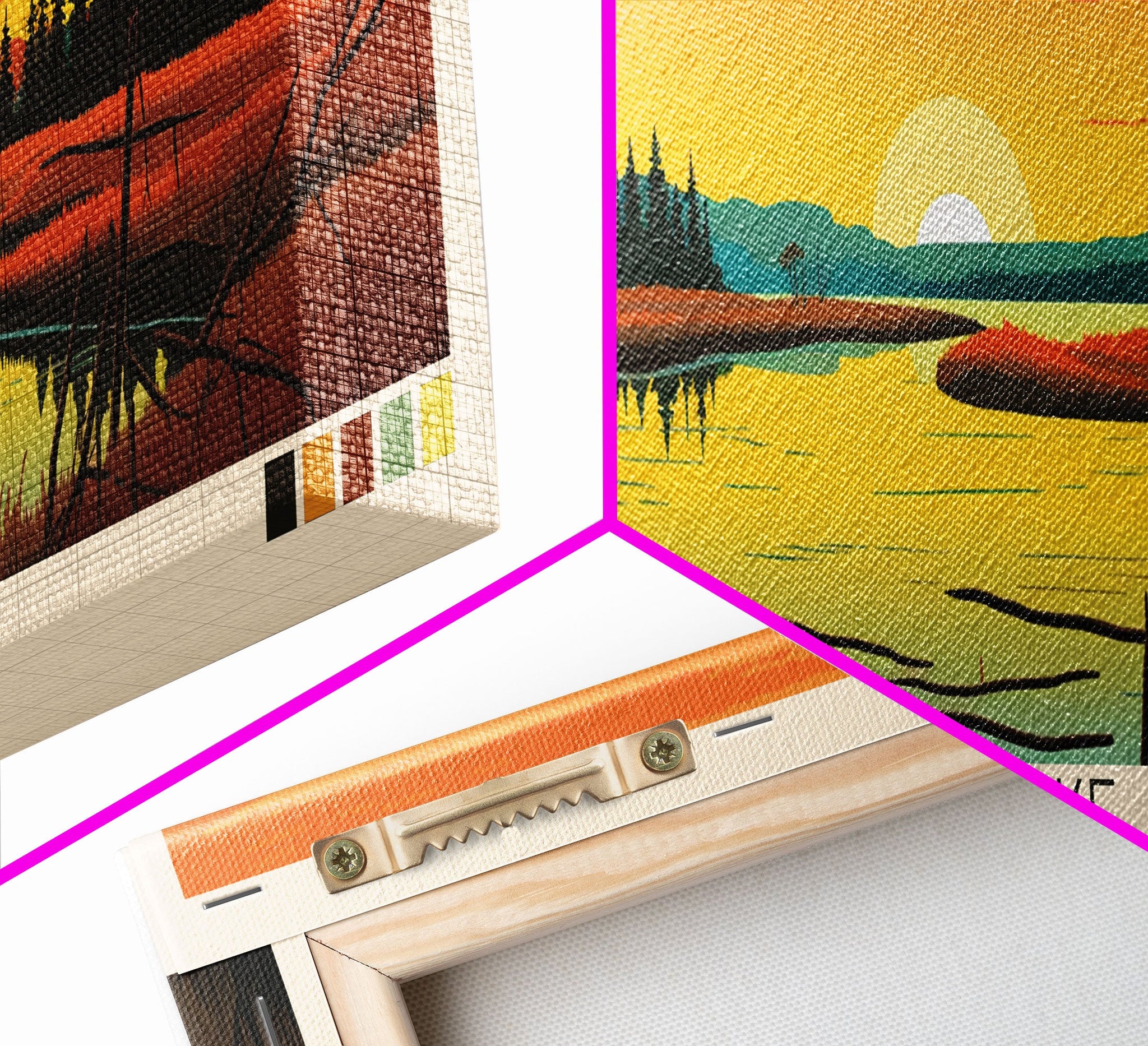 Stump Lake, North Dakota Framed Canvas Print, Lake House Art, Midcentury Modern Decor, Pop Art, Travel Poster, Living Room Wall Art