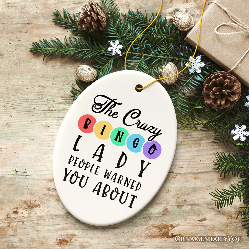 Celebrate the bingo queen in your life with a little holiday humor! Featuring a colorful design, this ornament proudly announces “The Crazy Bingo Lady People Warned You About.” Perfect for anyone who loves a good game night and doesn’t mind the title of “bingo fanatic,” it’s a delightful addition to any festive decor and a surefire conversation starter. Give the gift of laughs and let her bingo-loving spirit shine all season long!