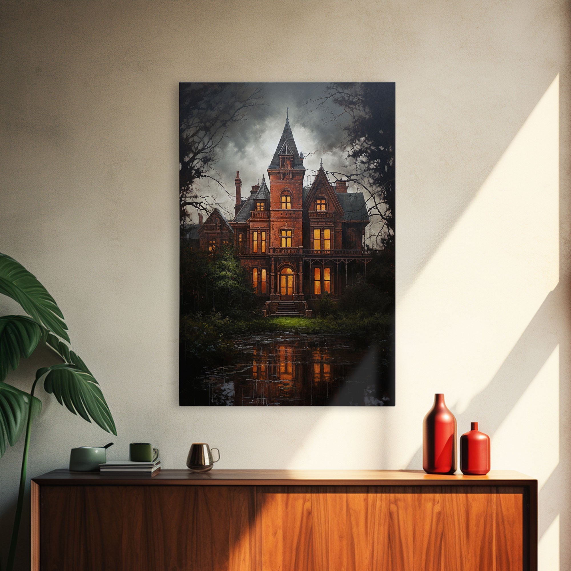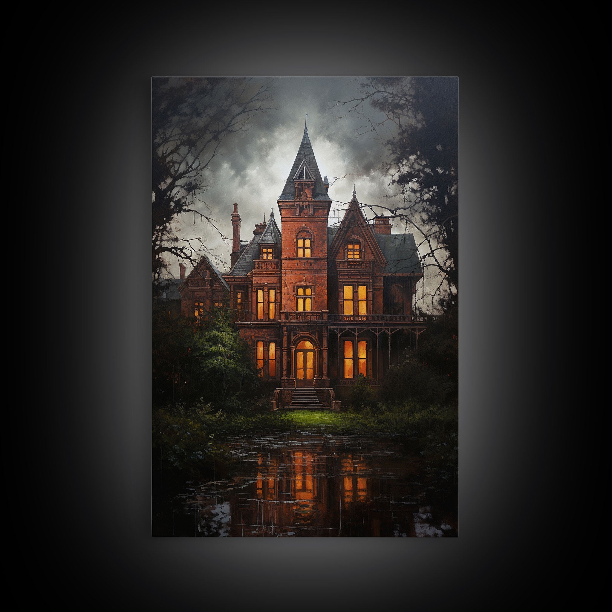 The Haunted House, Framed Canvas Art, Painting Of Haunted Victorian Mansion, Dark Academia, Halloween Decorations, Halloween Art