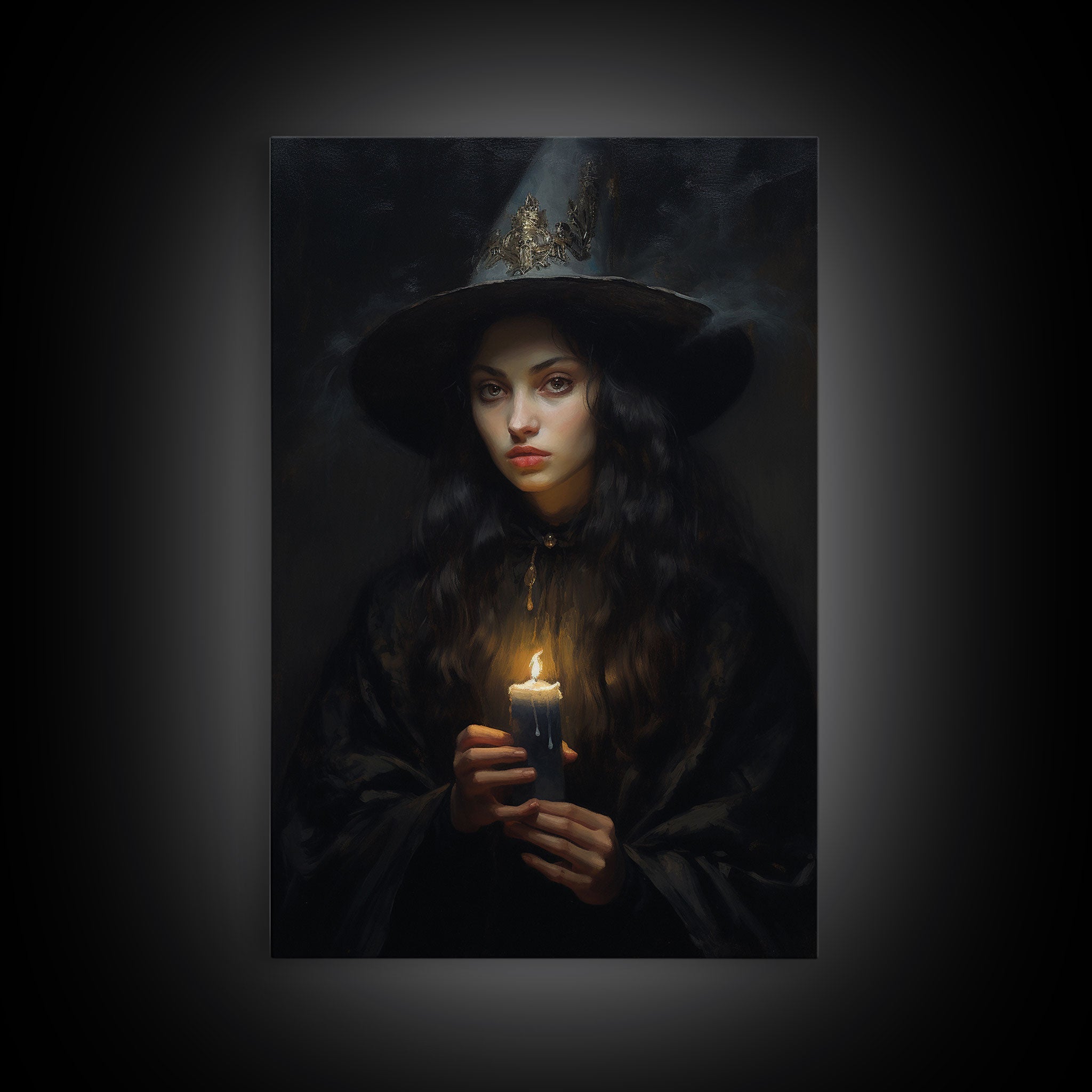 The Witch And The Candle, Gothic Victorian Art, Framed Canvas Print, Halloween Canvas, Halloween Decoration, Dark Academia Gothic Art