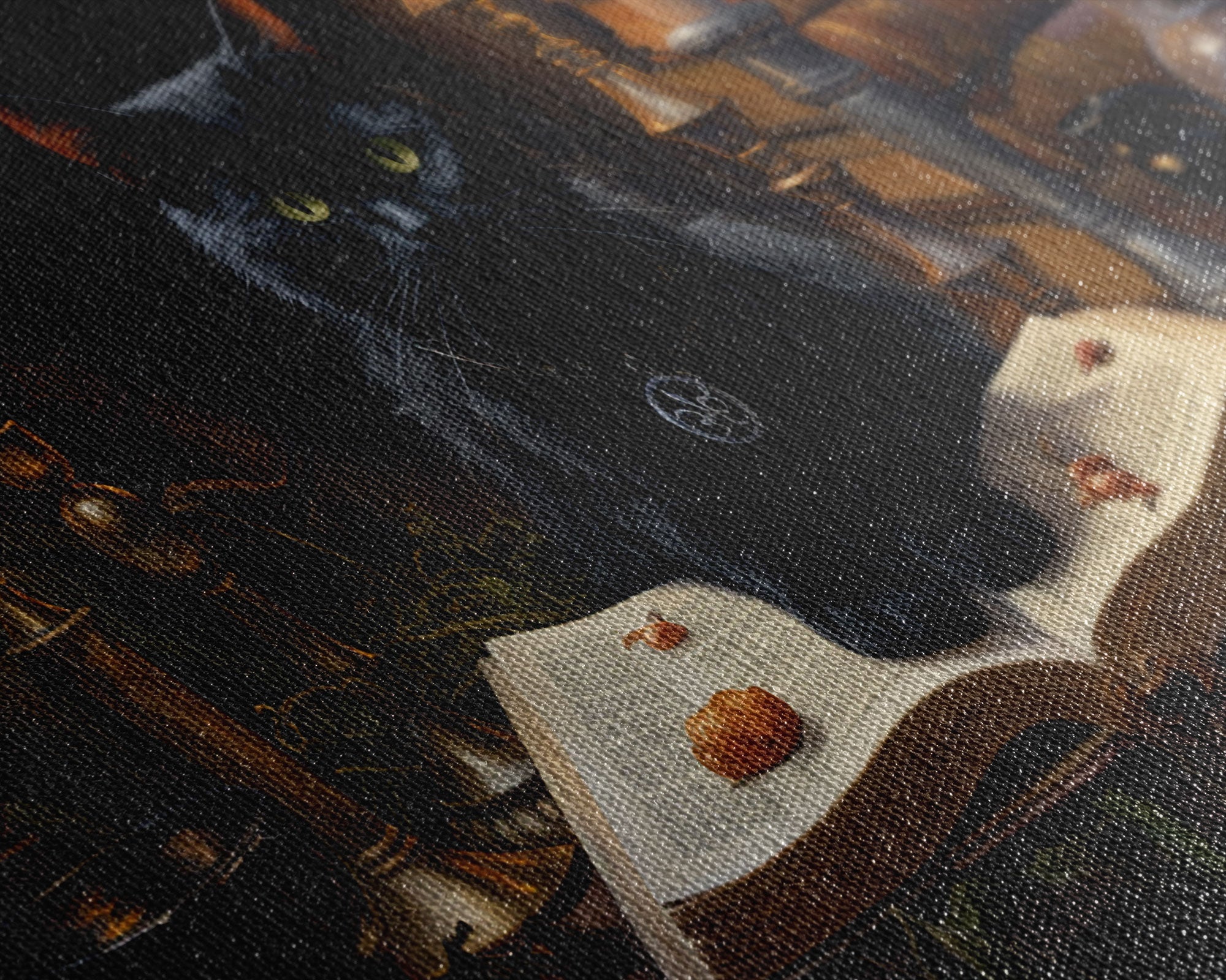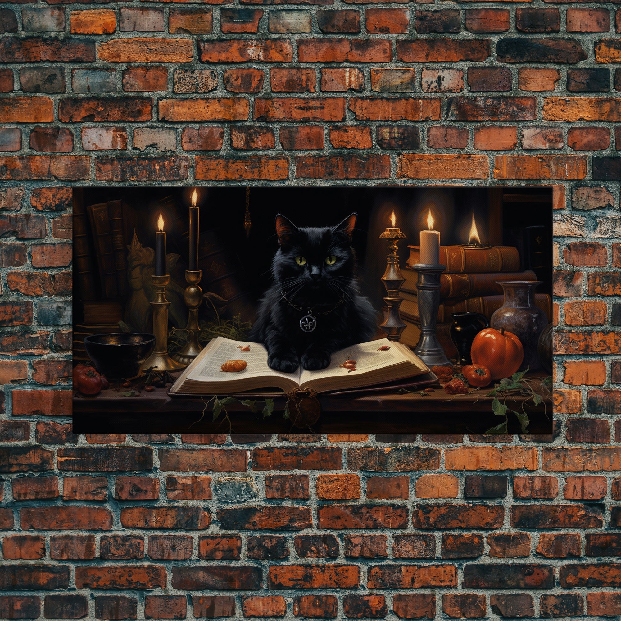 The Witch's Familiar, Black Cat Art, Witch Print, Framed Canvas or Poster, Victorian Oil Painting, Dark Academia, Witchcraft Decor