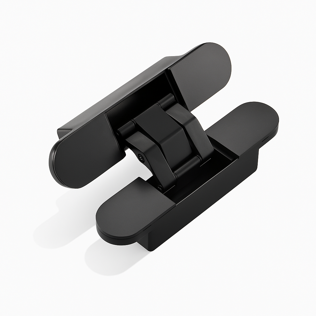 Tuarai Door Hinge is a sleek solution for doors that gives a tidy, modern look. With removable cover plates hiding adjustment screws, this hinge seamlessly blends into your decor. When the door is shut, the hinge is entirely hidden, offering a clean and smooth appearance.