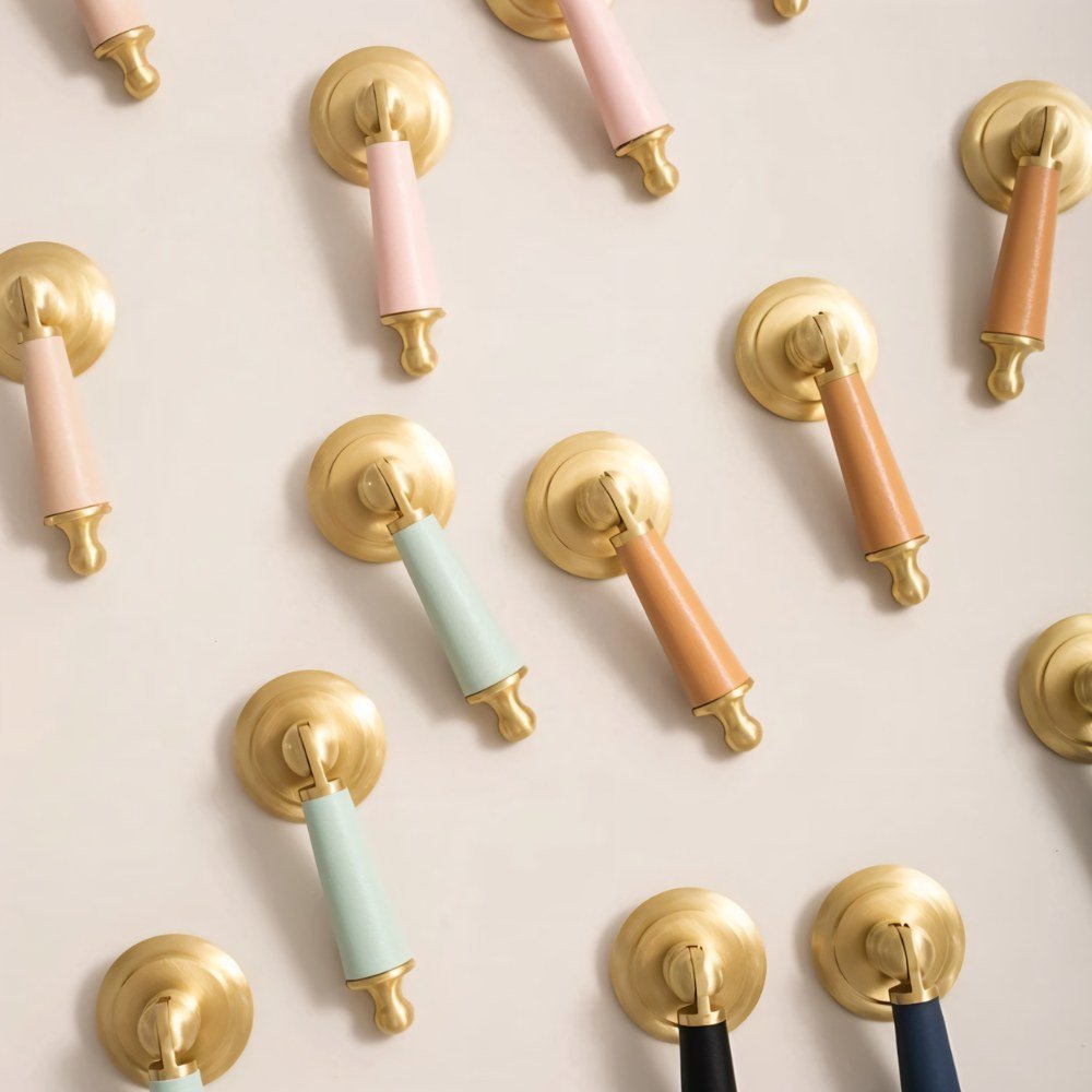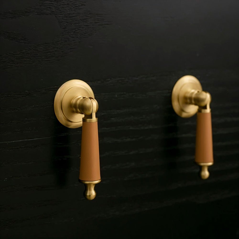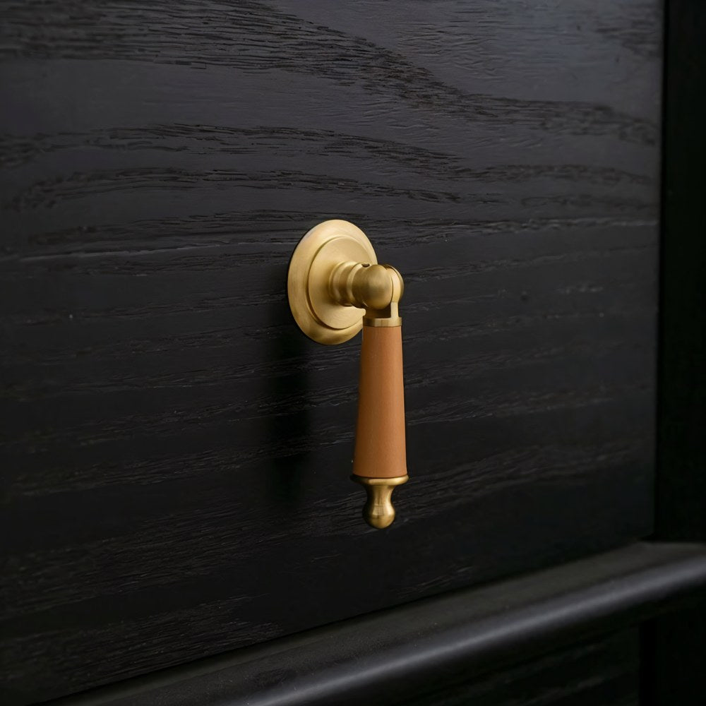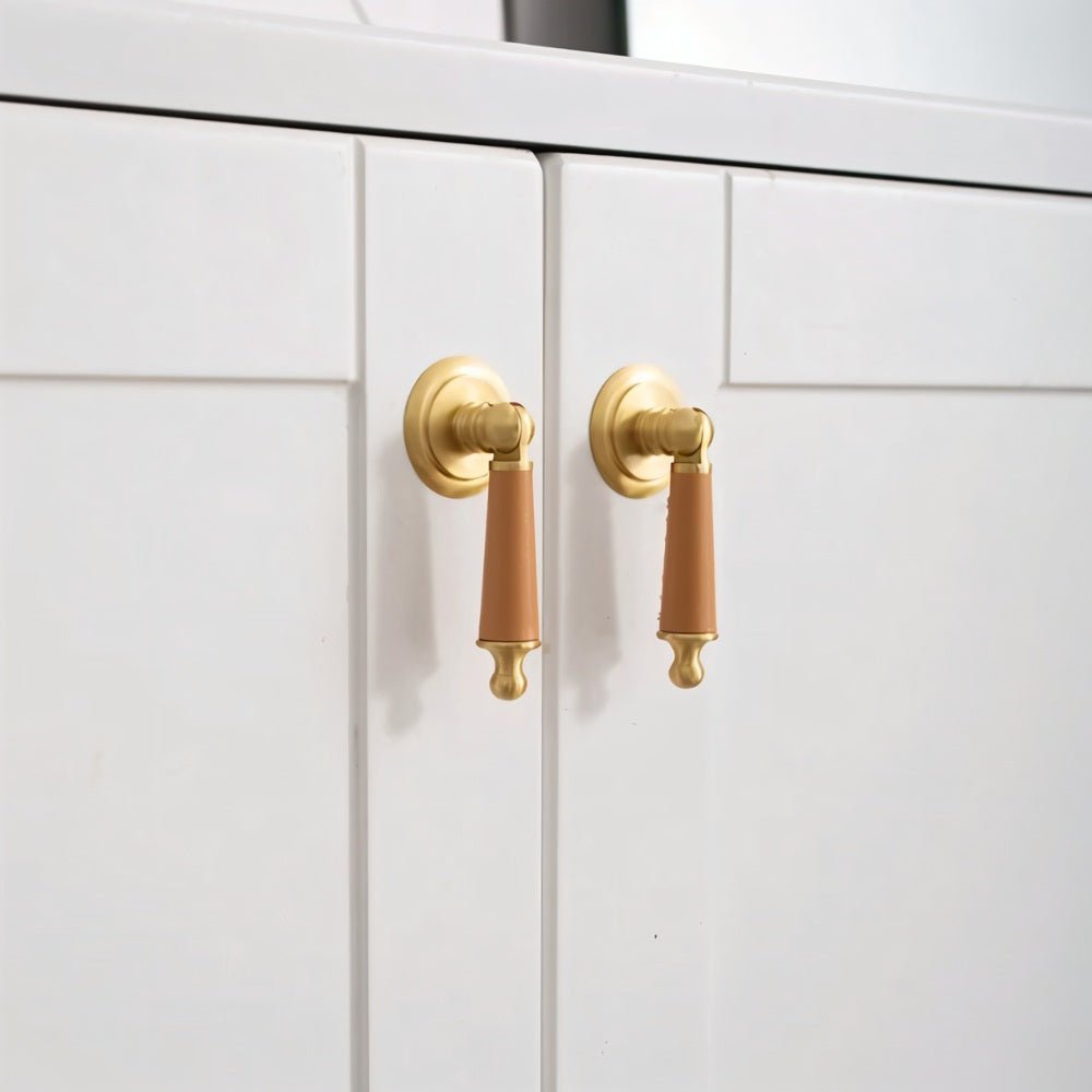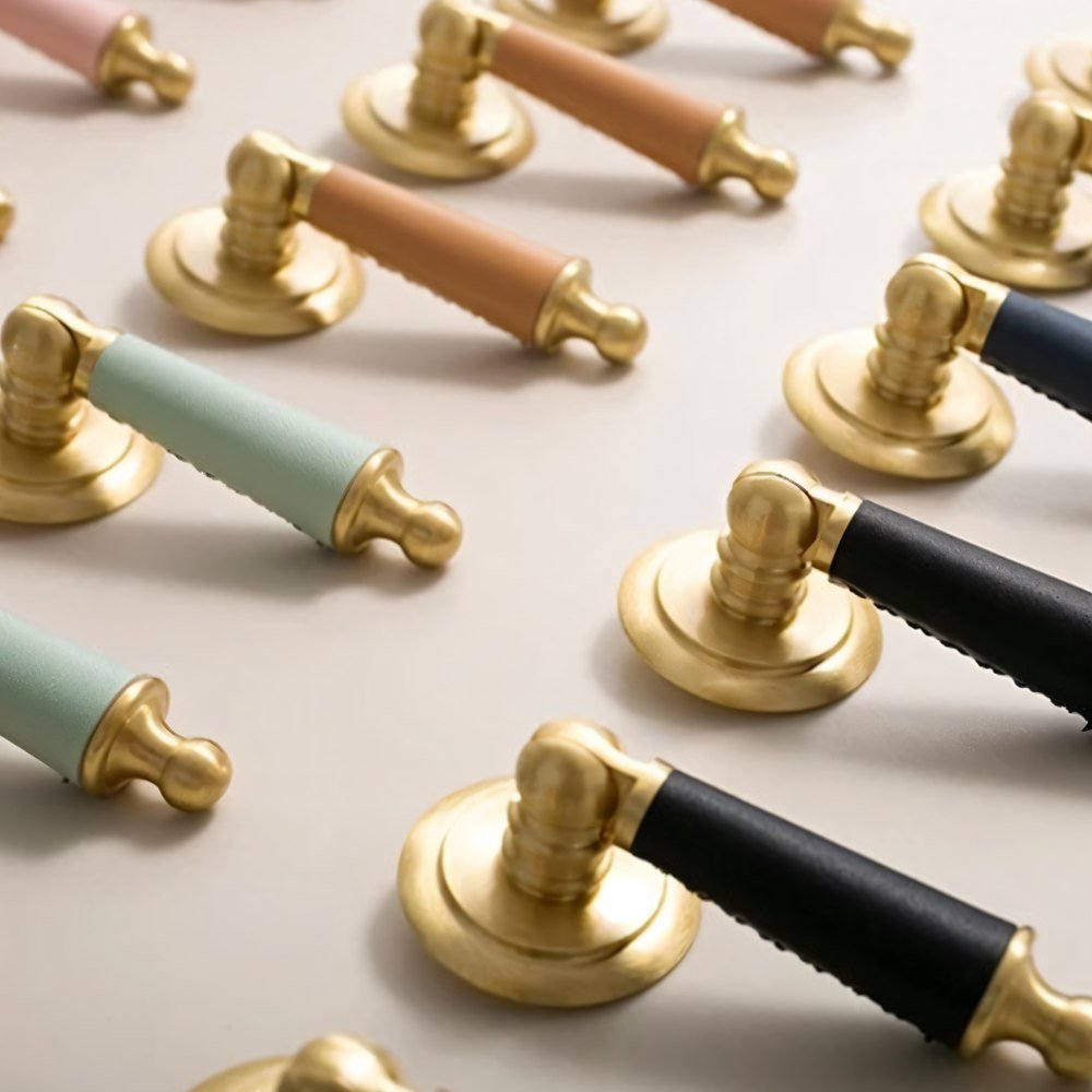 The unique blend of premium cowhide and solid brass creates a sophisticated look, while the ergonomic design ensures a comfortable grip for everyday use. The one-of-a-kind patterns on each handle add a touch of natural elegance, making them a perfect addition to any home.