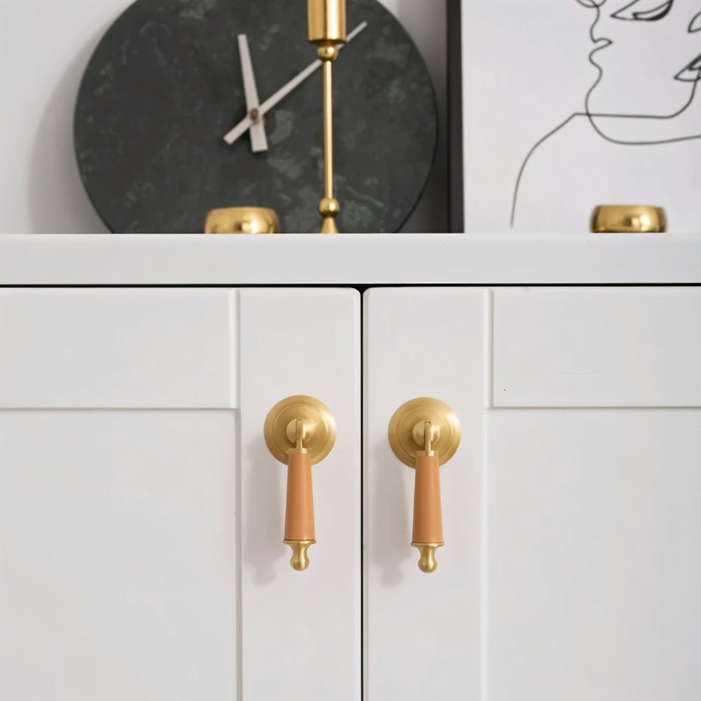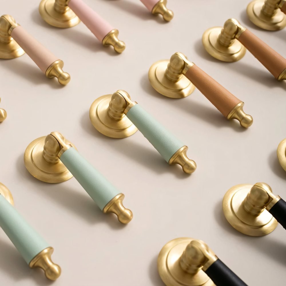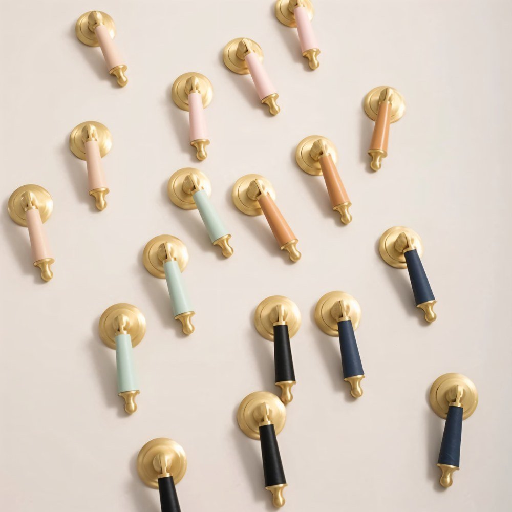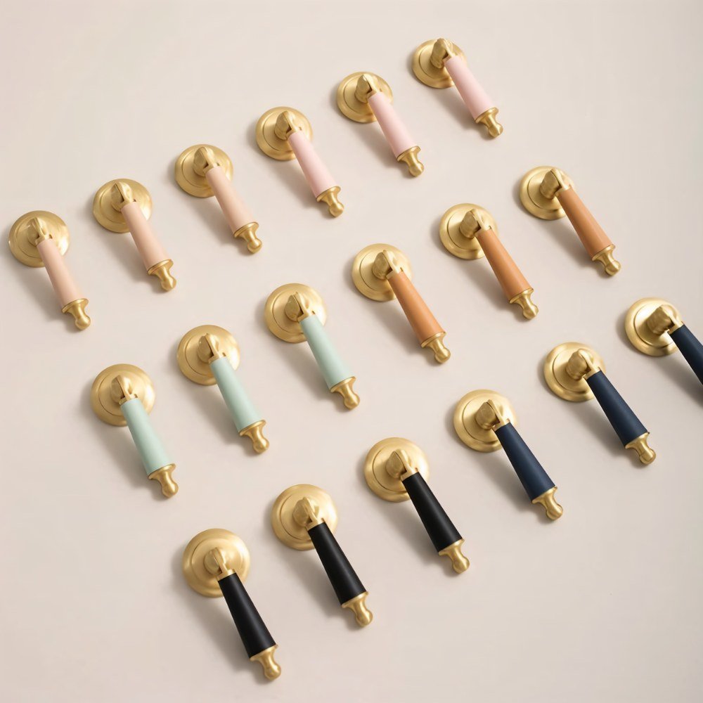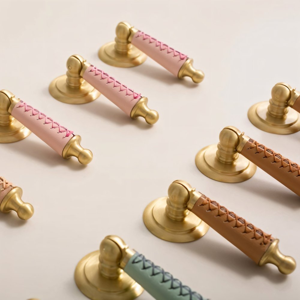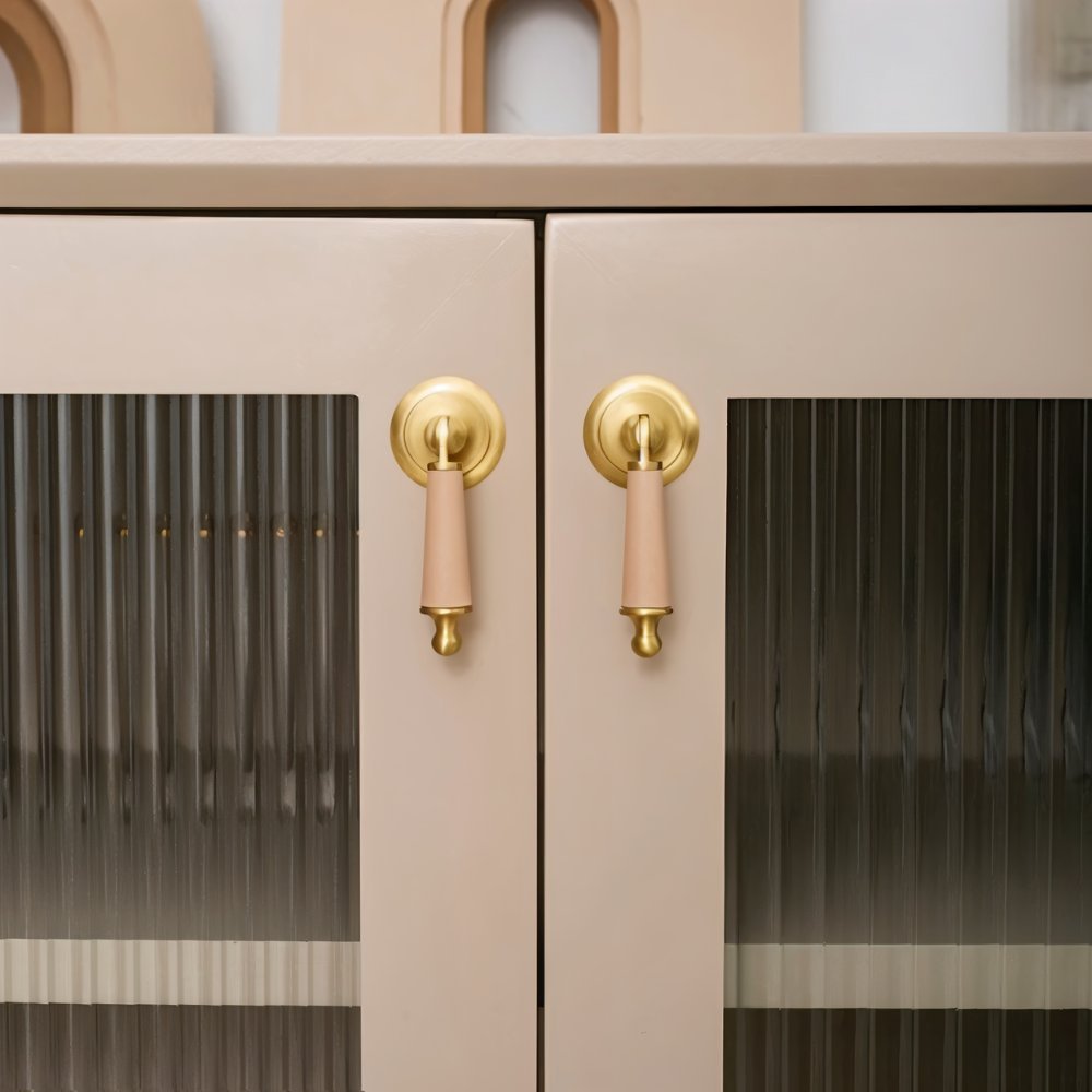 The unique blend of premium cowhide and solid brass creates a sophisticated look, while the ergonomic design ensures a comfortable grip for everyday use. The one-of-a-kind patterns on each handle add a touch of natural elegance, making them a perfect addition to any home.