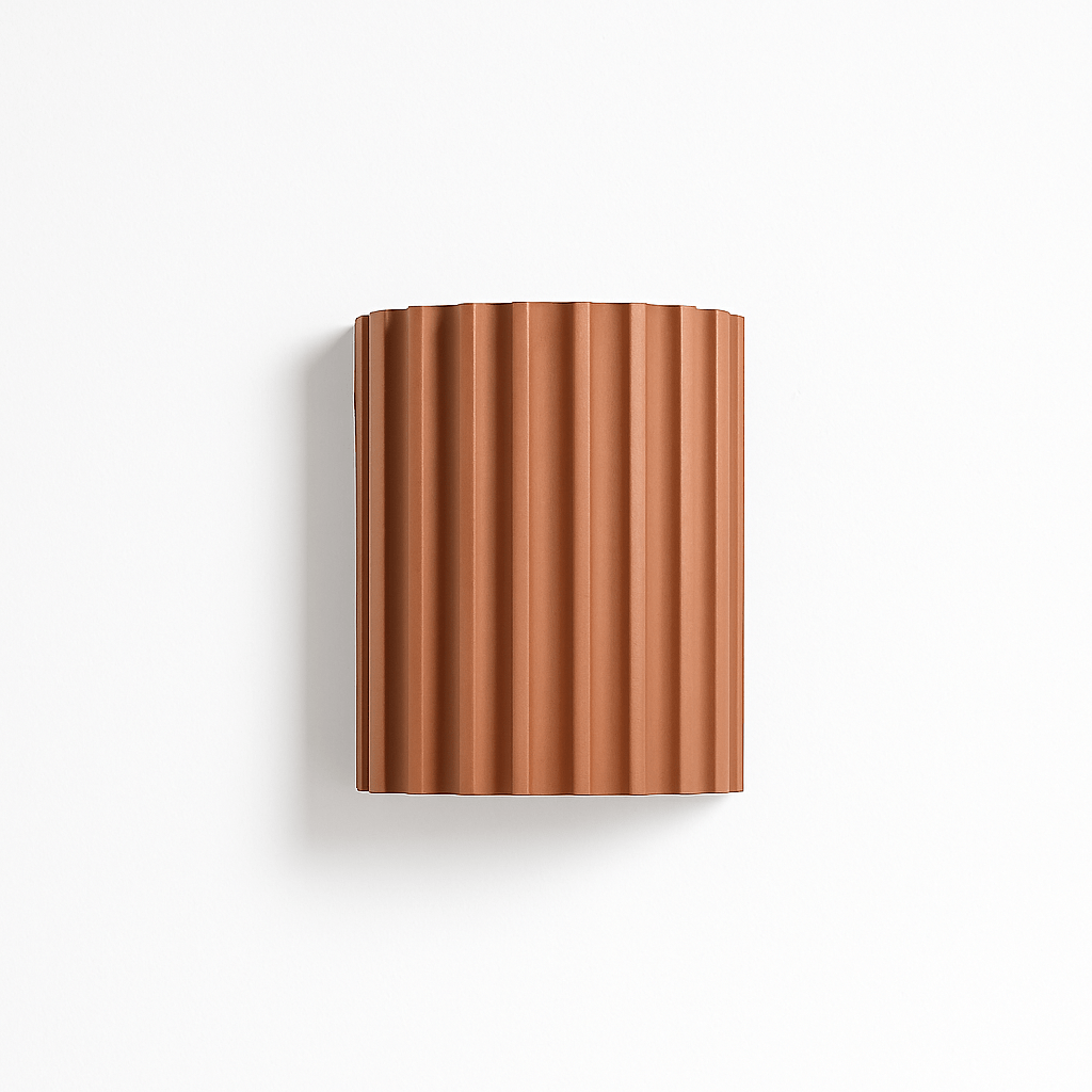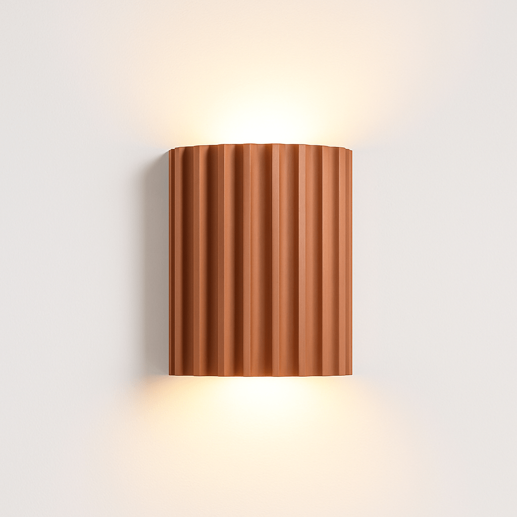 The Ujal Wall Lamp is a modern and minimalist light fixture crafted from durable resin. Featuring a textured, fluted design, this sleek wall lamp adds a contemporary touch to any room. Its warm, ambient glow is perfect for creating a cozy atmosphere in bedrooms, living rooms, hallways, or entryways. The Ujal's unique form, paired with its functional and stylish design, makes it an ideal choice for both residential and commercial spaces looking for elegant lighting solutions.