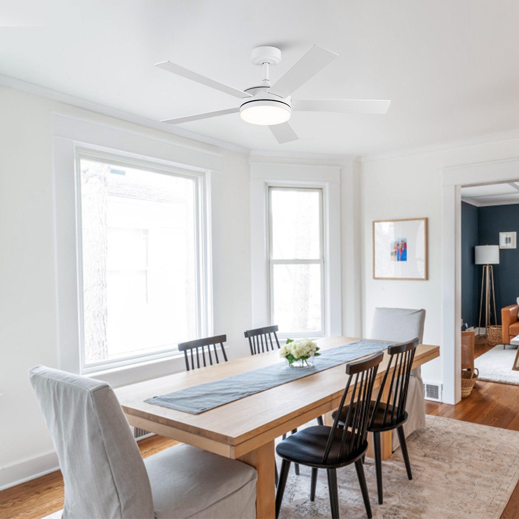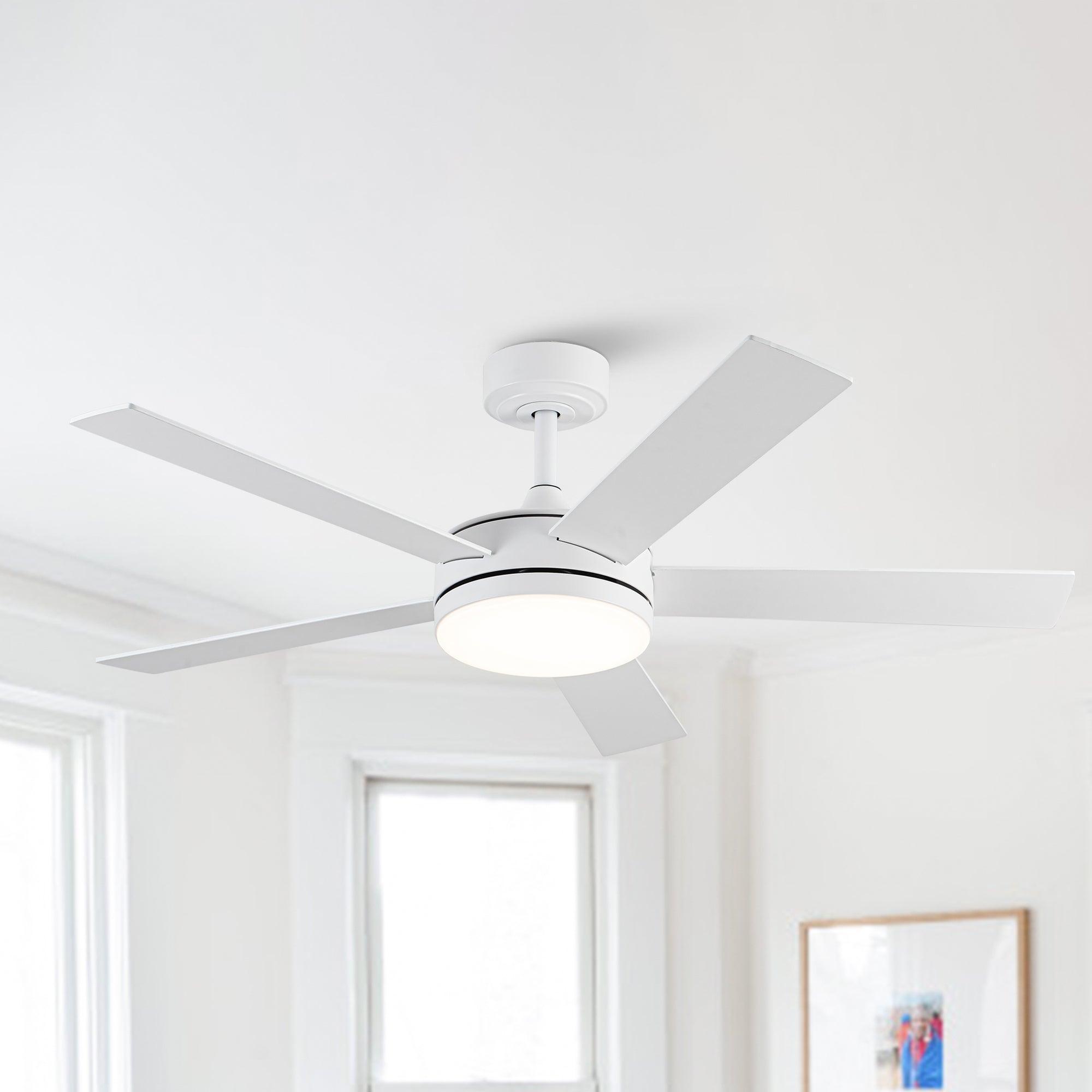 Enhance the aesthetics of your space with this stylish 48" industrial ceiling fan. Boasting a crisp black, white, or brushed nickel finish, this ceiling fan seamlessly combines simplicity and style. Moreover, the fan is equipped with five MDF blades and an 18W LED light, for which the bulb is included. This light can be adjusted to your preference in color temperature, with options ranging from warm white (3000K), natural white (4000K) to cool white (6000K). Additionally, comprehensive instructions are provided to ensure a hassle-free installation process. Despite its sophisticated design, the fan is specifically designed for use in dry indoor environments, therefore, it's not recommended for outdoor or damp indoor locations. With this ceiling fan, you can not only improve the comfort of your space but also its overall aesthetic appeal.