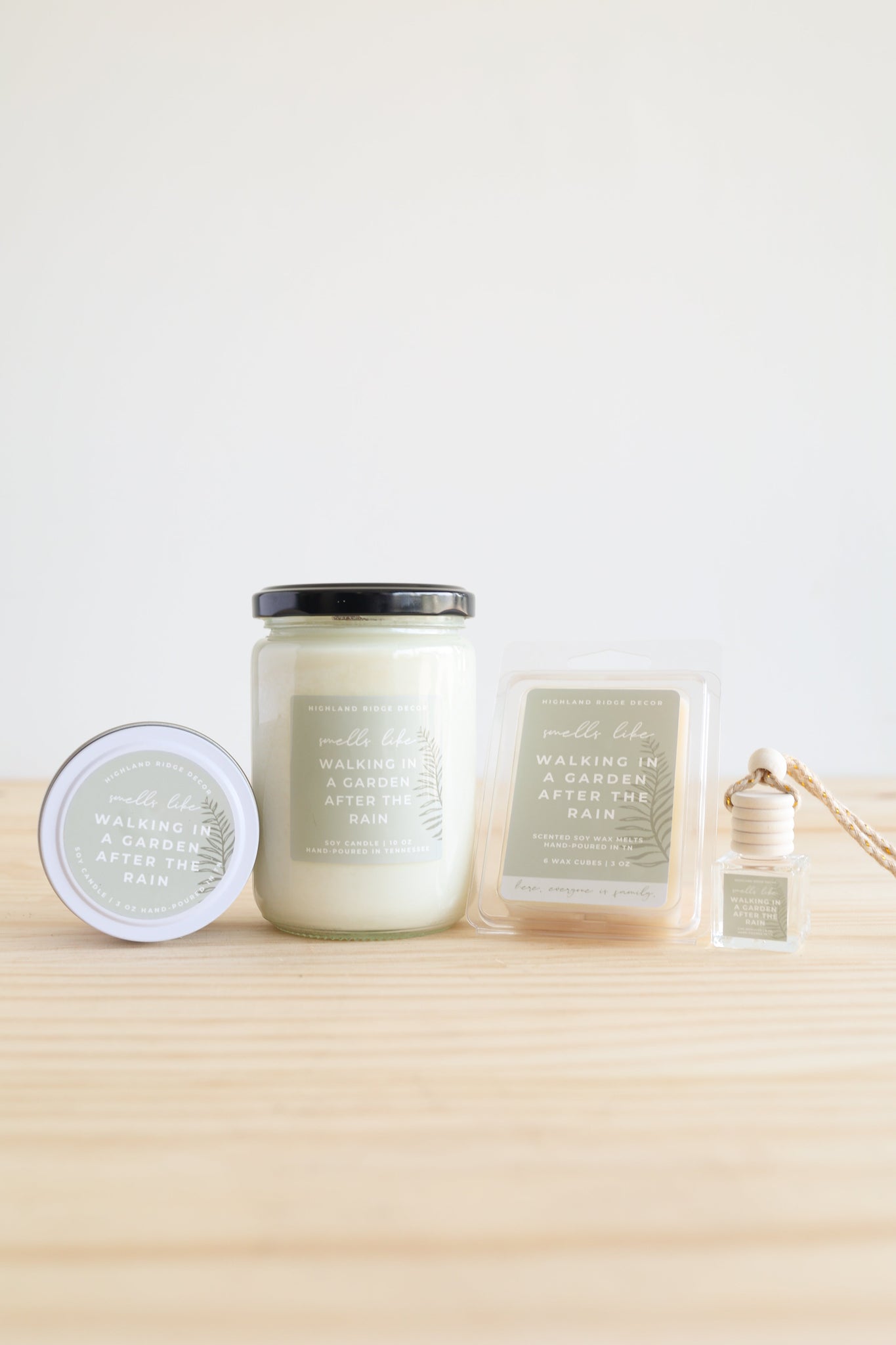 "Walking in a Garden After the Rain" evokes the serene beauty of nature with notes of jasmine, gardenia, orchid dew, fern, and wet moss. This earthy yet elegant scent blends soft florals with fresh greenery to create a calming, rain-kissed atmosphere.