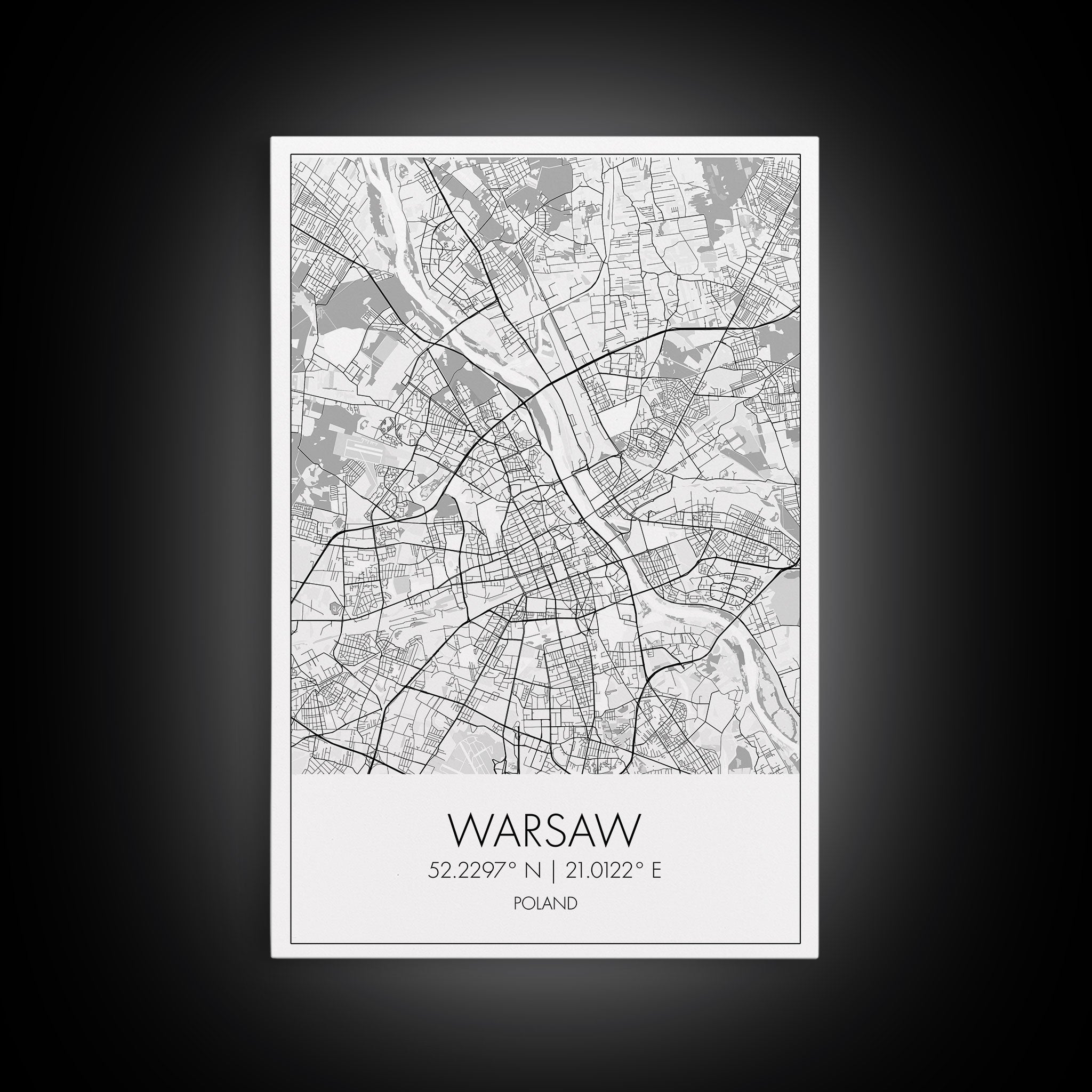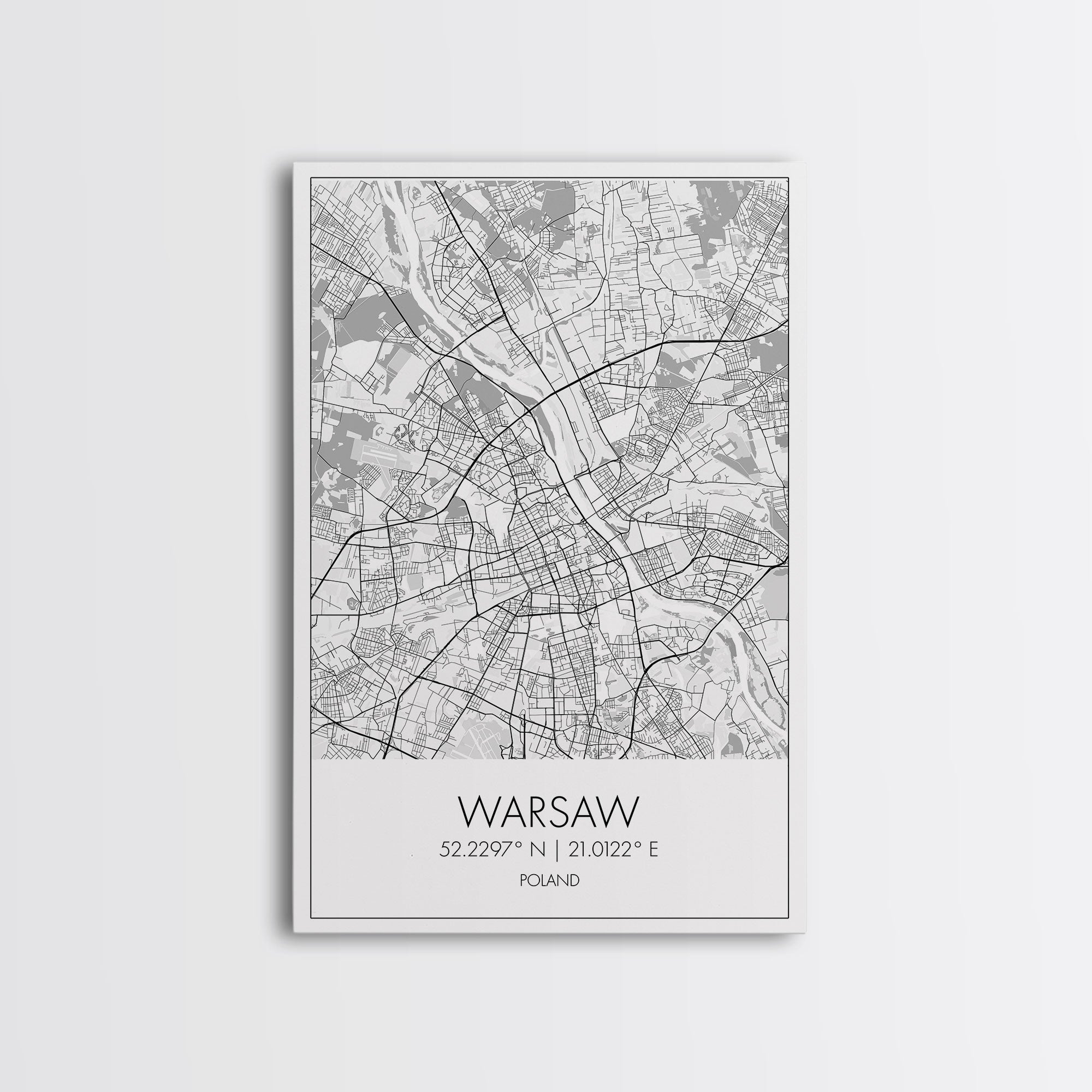 Warsaw Street Map, Poland Map, Europe City Map Print, Minimalist Art, Wall Art, Canvas Print, Living Room Wall Art, Friends Gift, Travel Art