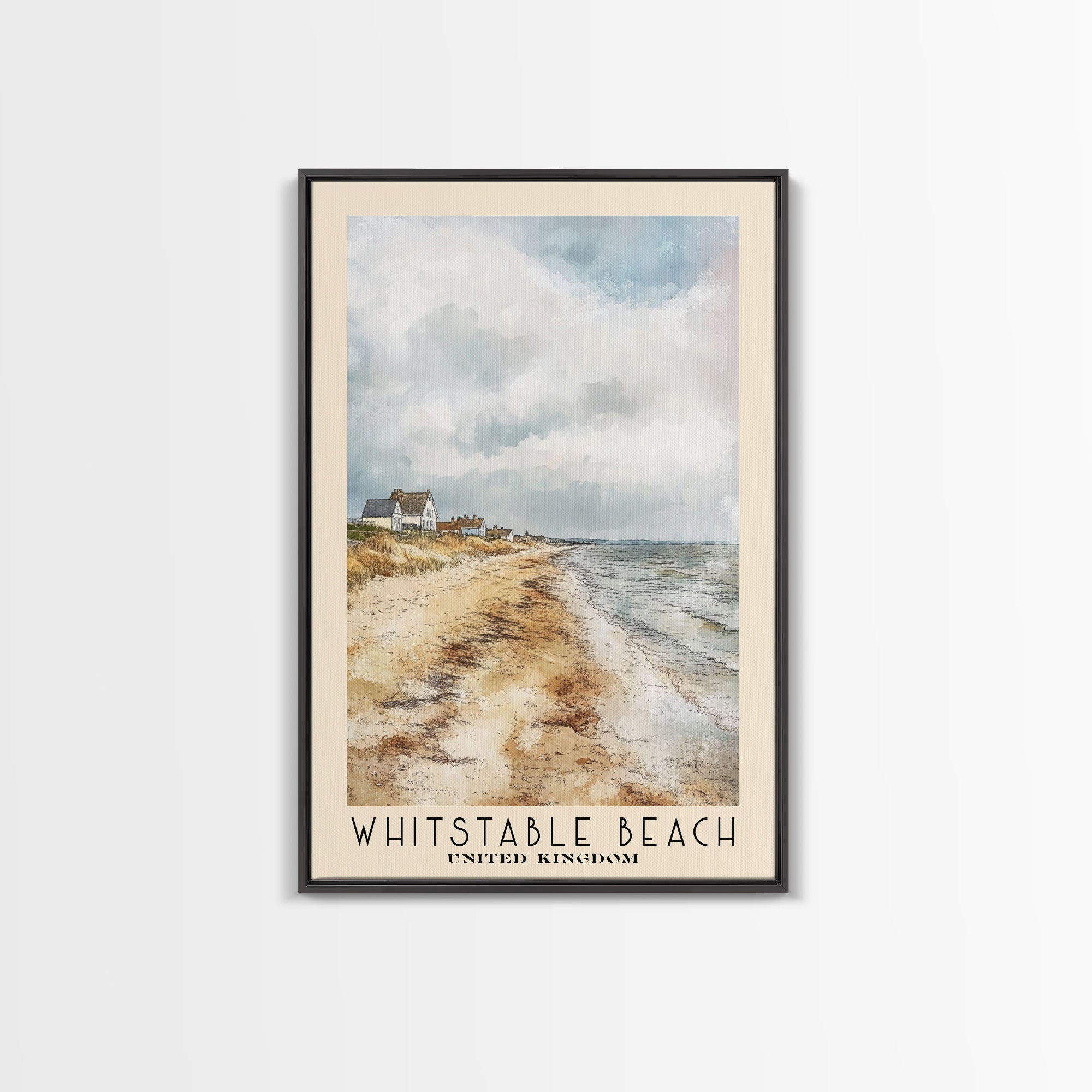 Whitstable beach, United Kingdom Watercolor Beach Print, Vacation Gift, United Kingdom Wall Art, Beach Painting, Beach Decor, Beach Painting