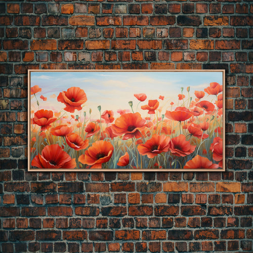 Beautiful Colorful Painting of a field of flowers, Wall Decor, Ready To Hang Framed Canvas Print, Oversize Wall Art