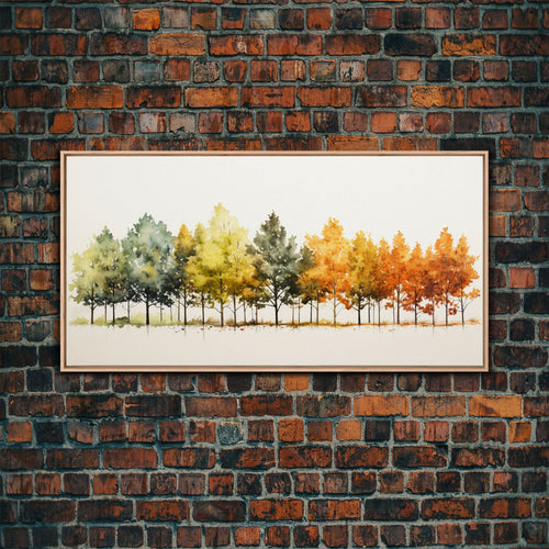 Beautiful Fall Centerpiece Wall Art, Framed Canvas Print, Autumn Landscape Watercolor Painting, Minimalist Boho Style Wall Art, Minimalist
