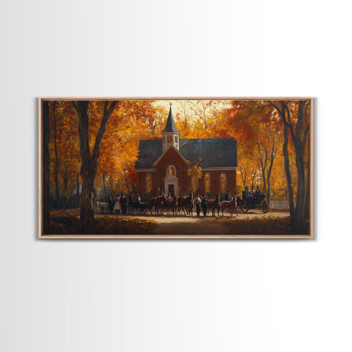 Beautiful Country Church in Autumn Scene Framed Canvas Print Fall Art, Rustic Autumn Church Scene, Vintage Wall Art Home Decor
