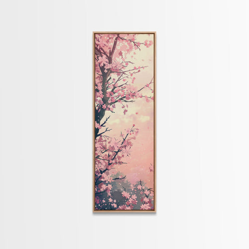 Beautiful Cherry Blossoms Blooming On Tree Branch Against Soft Pastel Background Captured Tall Framed Canvas Print Floral Home Decor
