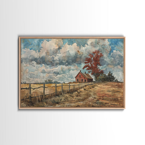 Bedroom Wall Decor, Watercolor Painting Print Of An Old Rustic Farmhouse, Modern Art, Rustic Primitive Decoration, Extra Large Wall Art