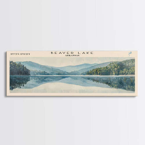 Beaver Lake Arkansas Framed Canvas Print, Panoramic Wall Art, Midcentury Modern, Pop Art, Travel Poster, Scenic Lake House Art, Bedroom Decor