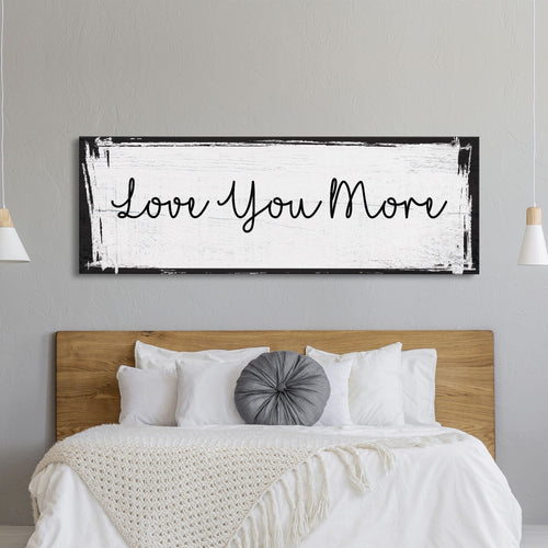 Bedroom wall decor, above bed canvas print, master bedroom sign, love you more, gift for her
