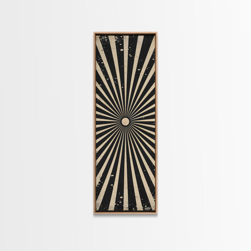 Black and White Sun Burst Art Deco Inspired Framed Canvas Print, Wall Art, Office or Mancave Wall Art