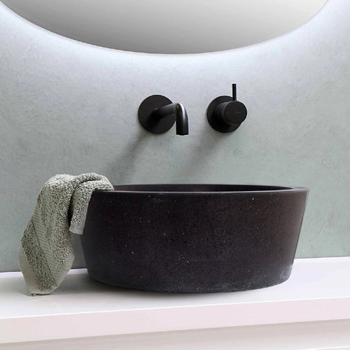 Black Andesite Natural Stone Tapered Above Vanity Bathroom Sink Honed/Matte (D)16" (H)6"