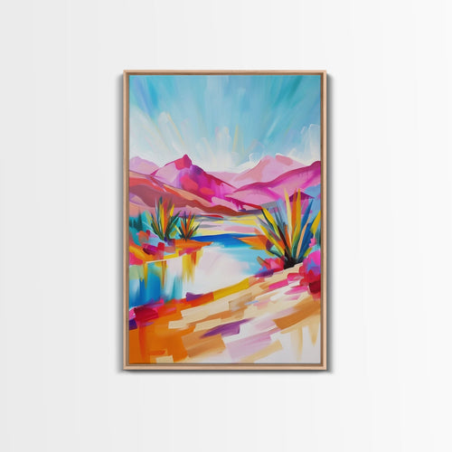 Bright Southwestern Landscape Art - Framed Canvas Print, Desert Decor, Vibrant Living Room Wall Art, Colorful Nature Scene