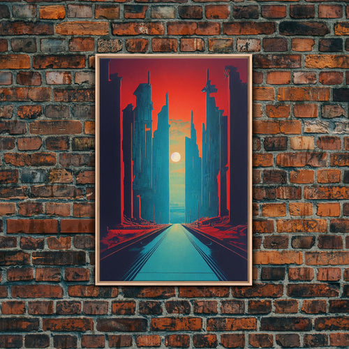 Brutalist Art Deco Dystopian City Art, Framed Canvas Print, Ready To Hang Framed Wall Art, Living Room Wall Decor