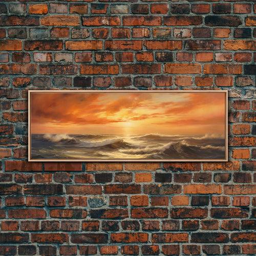 Framed Wall Art Print Set Sunset Horizon on Beach Shore Nature Ocean Oil Painting Nautical Scenic Colorful Multicolor Ultra