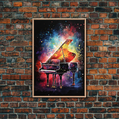 • Galaxy Themed Grand Piano Wall Art, Musical Instrument Print, Studio Art, Framed Canvas Print, Piano Art, Baby Grand Piano