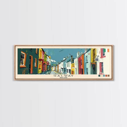• Galway Ireland Panoramic Travel Poster, Framed Canvas Print or Metal Wall Art, Travel Art, Home Decor, Panoramic Painting, Midcentury Art