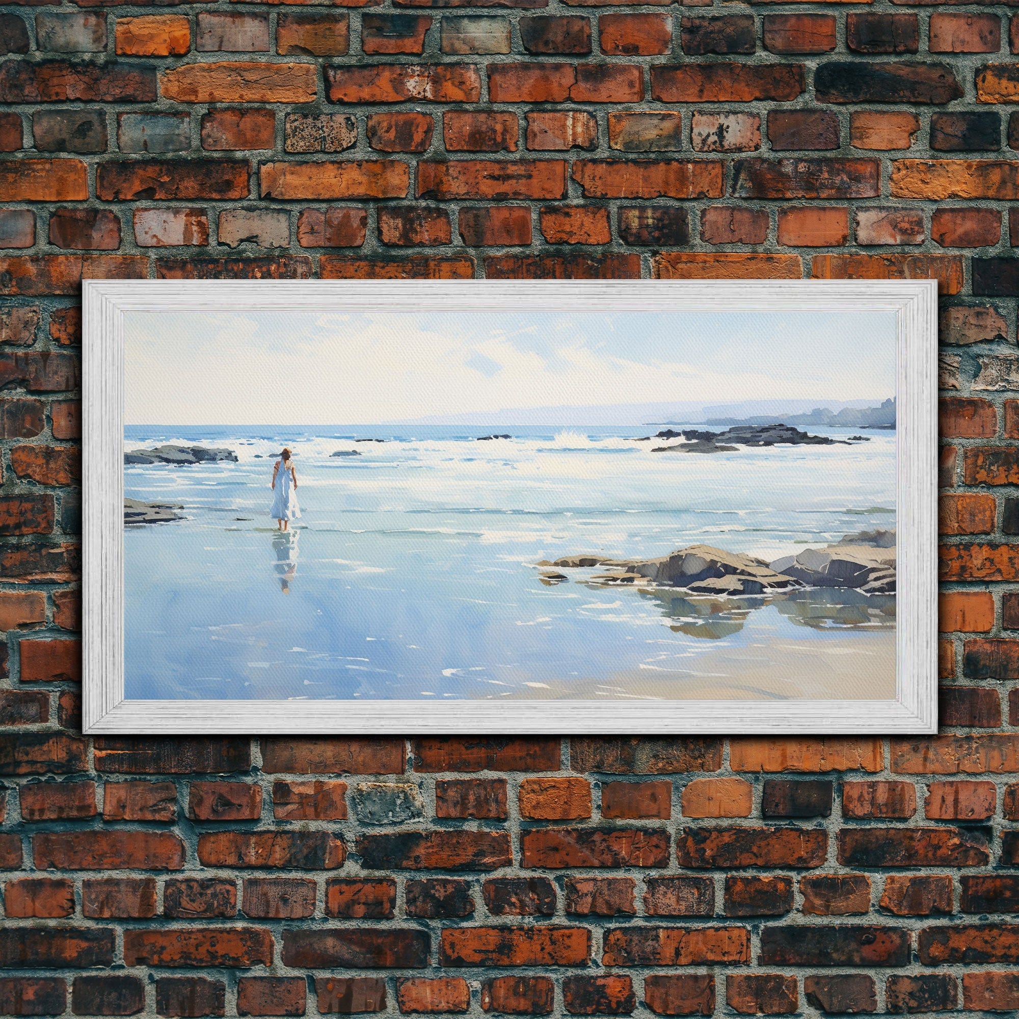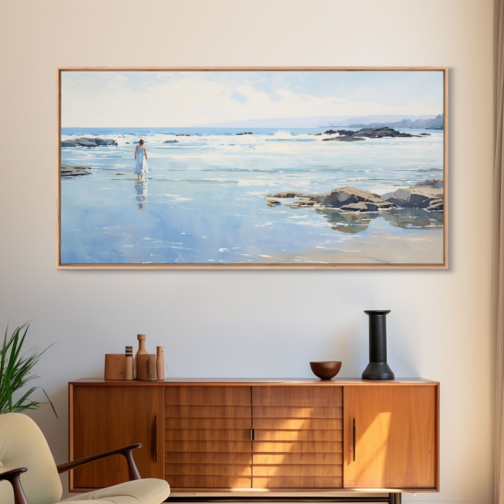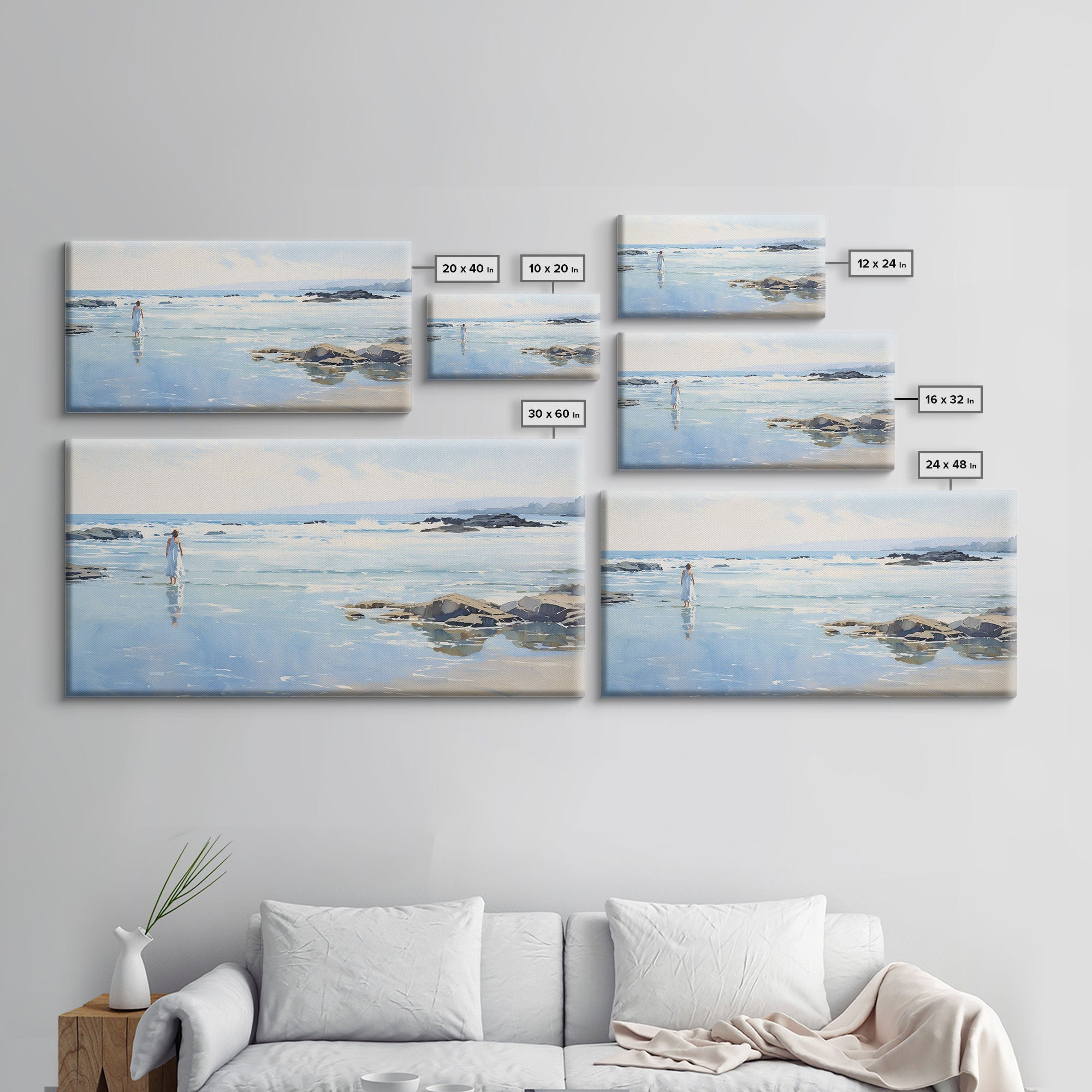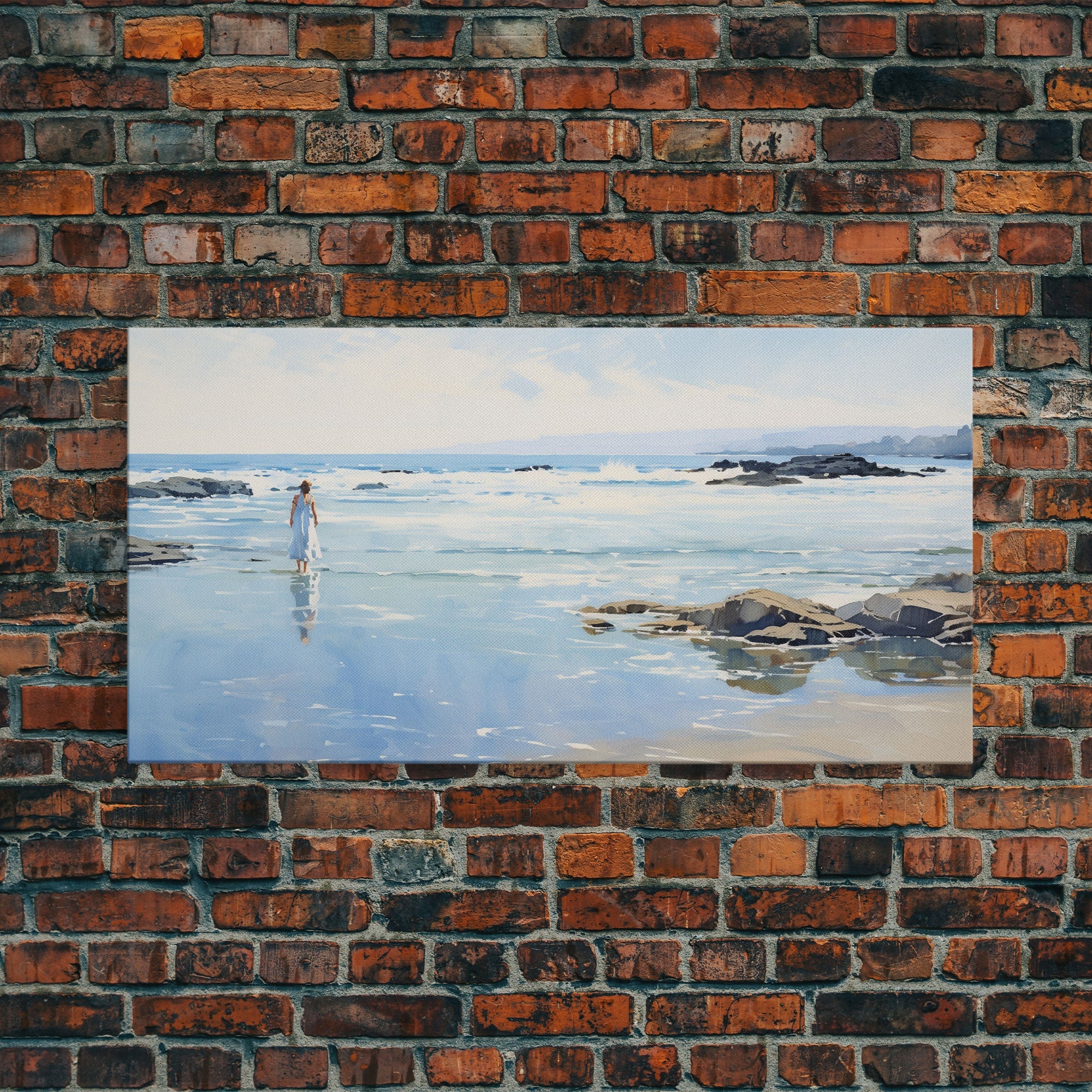 Beach Art, Framed Canvas Print, Wall Art, Woman On The Beach, Oil Painting Abstract Landscape Art, Beach House Art, Beach Painting