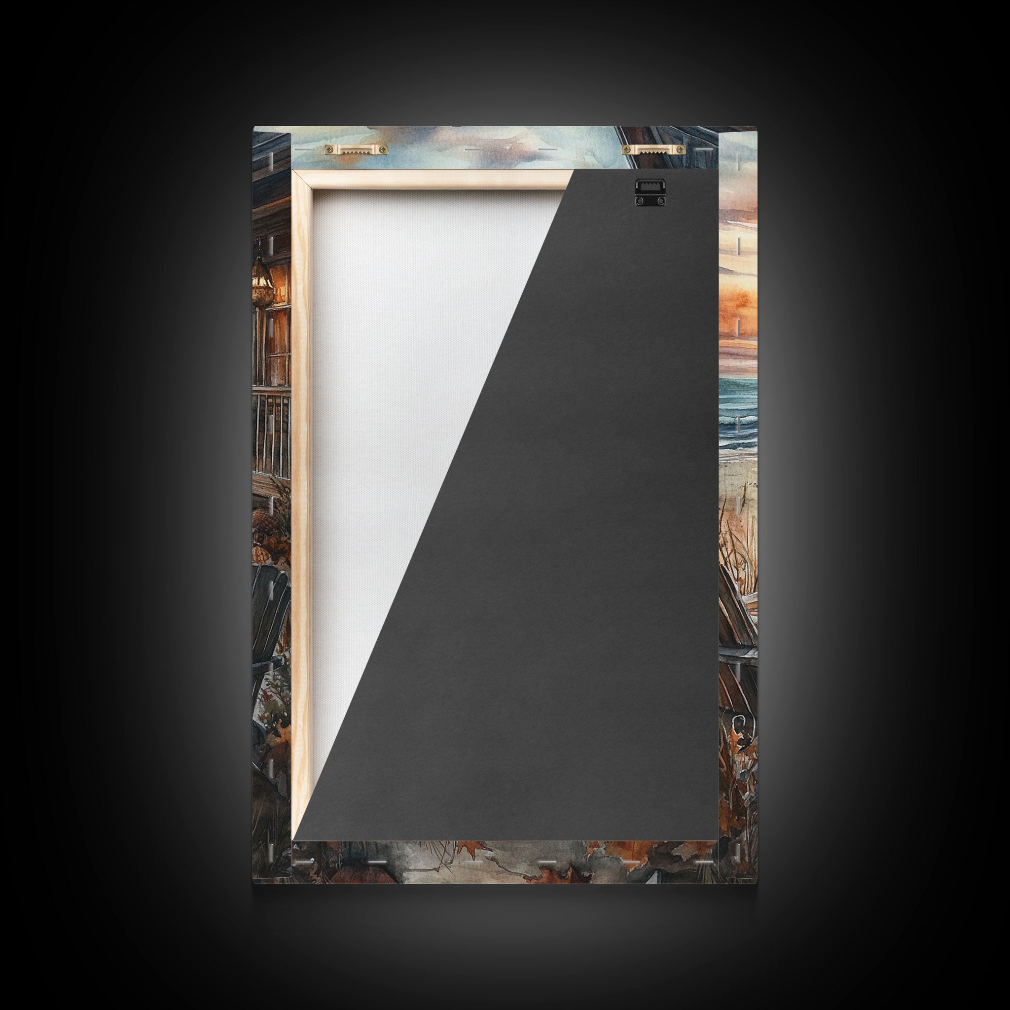 • Carregar imagem no visualizador da galeria, Beach Campfire On The Fall, Framed Canvas Print, Boho Beach Art Nautical Decor, Modern Christmas / Thanksgiving Gift Wall Art