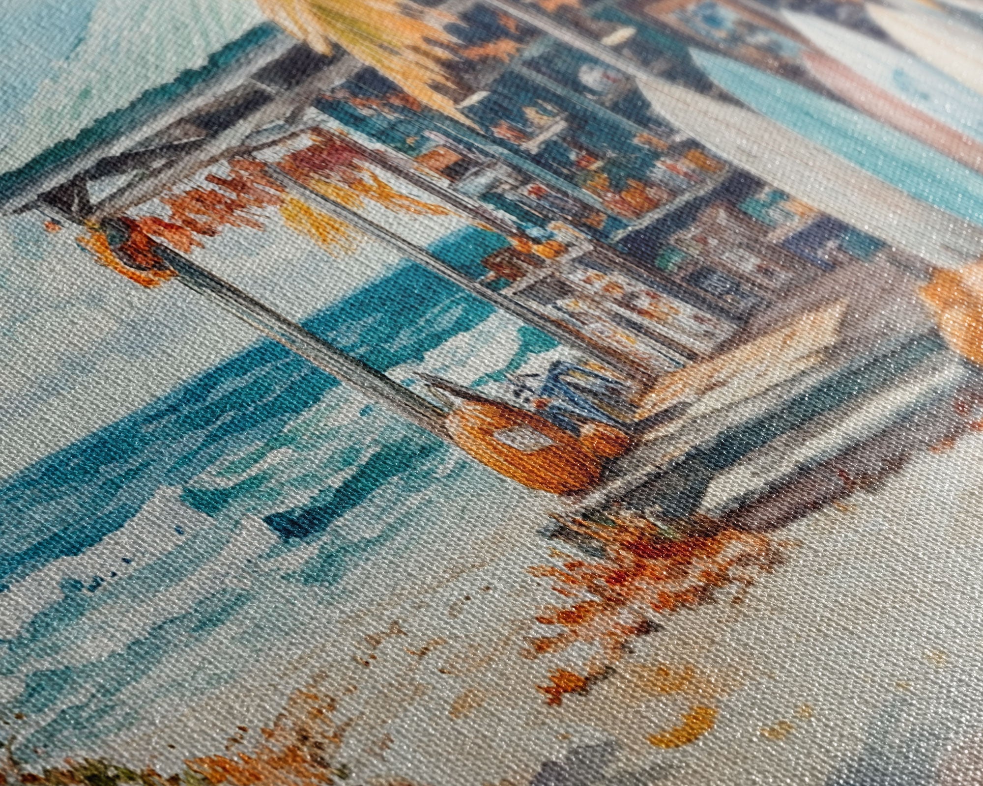 Most of our canvases are made in the USA, with the exception of canvases ordered with the light oak unstained frames, and any large canvases (24x48, 30x60, 16x48 and 20x60) ordered WITH a frame. These are temporarily made in and shipped from Europe, while we try to find a more consistent supplier in the USA.