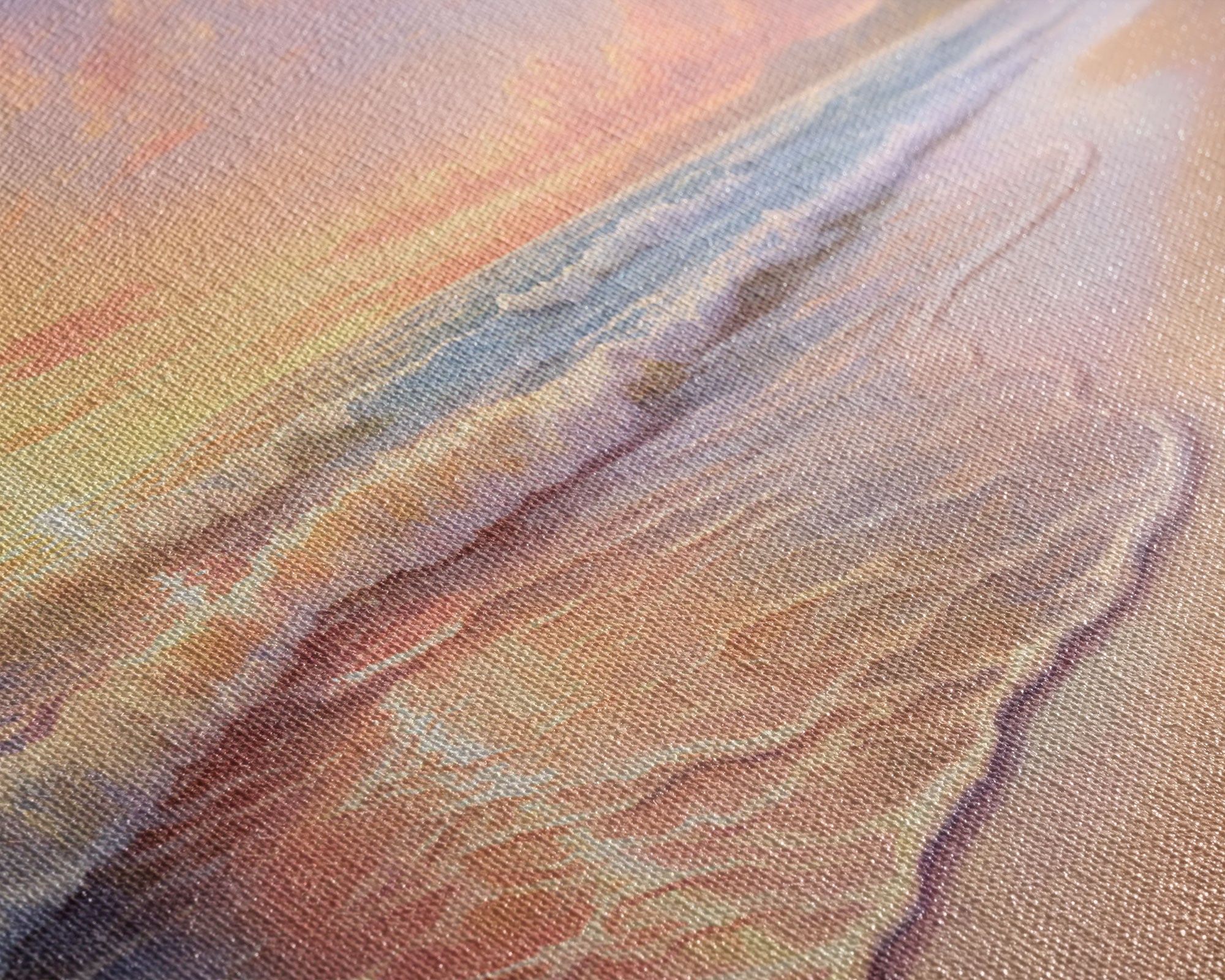 Most of our canvases are made in the USA, with the exception of canvases ordered with the light oak unstained frames, and any large canvases (24x48, 30x60, 16x48 and 20x60) ordered WITH a frame. These are temporarily made in and shipped from Europe, while we try to find a more consistent supplier in the USA.