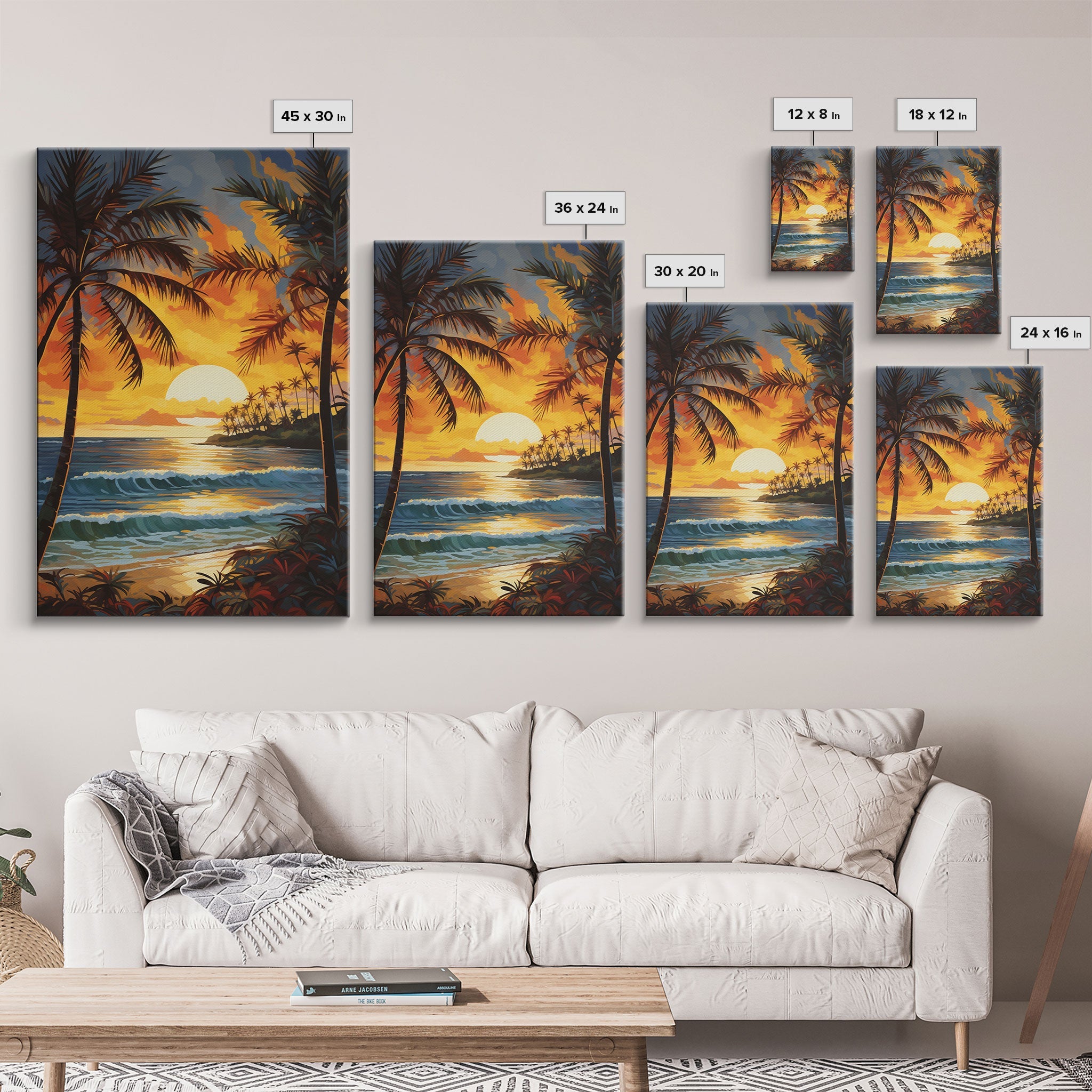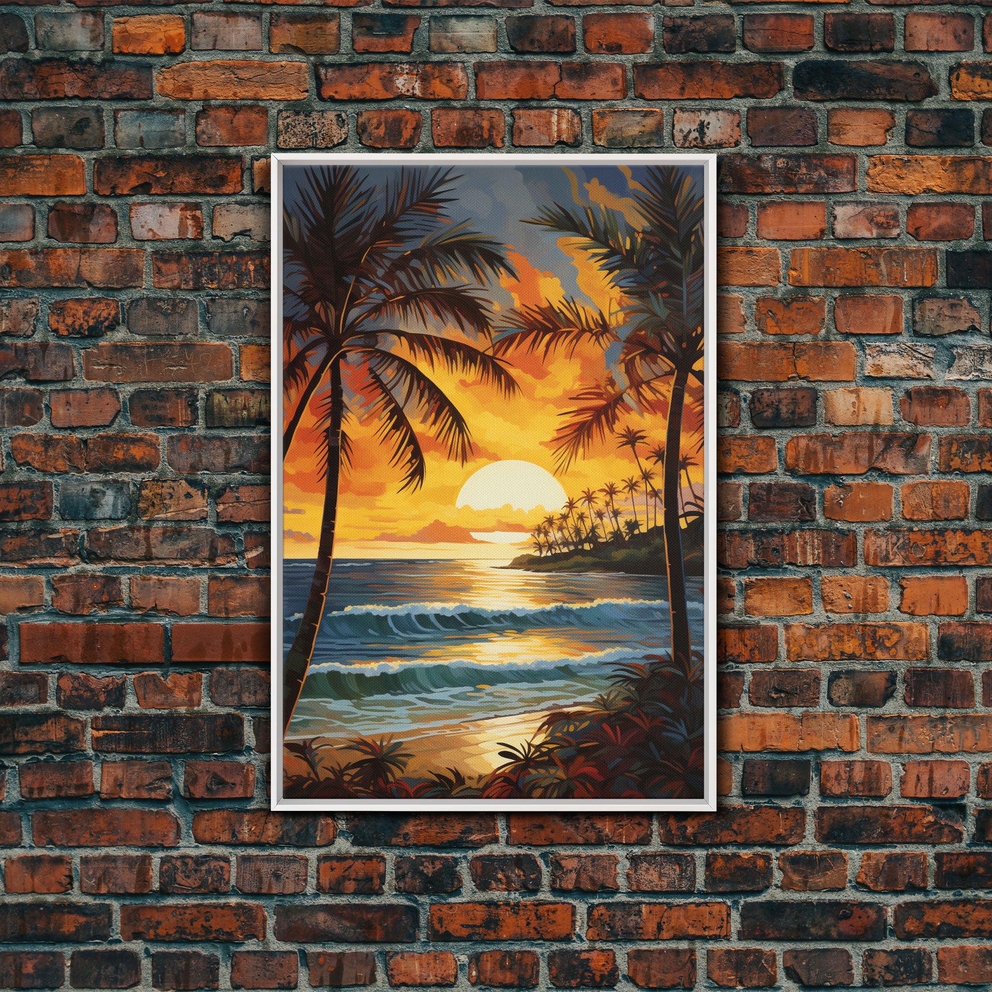 Beach Wall Print, Tropical Wall Art, Sunrise Wall Art, Canvas Print, Wall Art, Vertical Print, Entryway Prints, Dorm Room Art, Office Decor