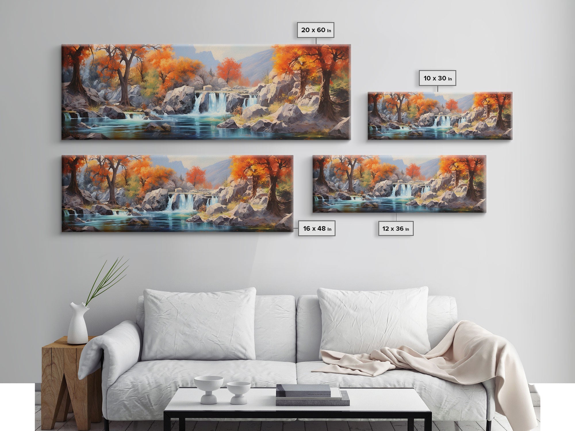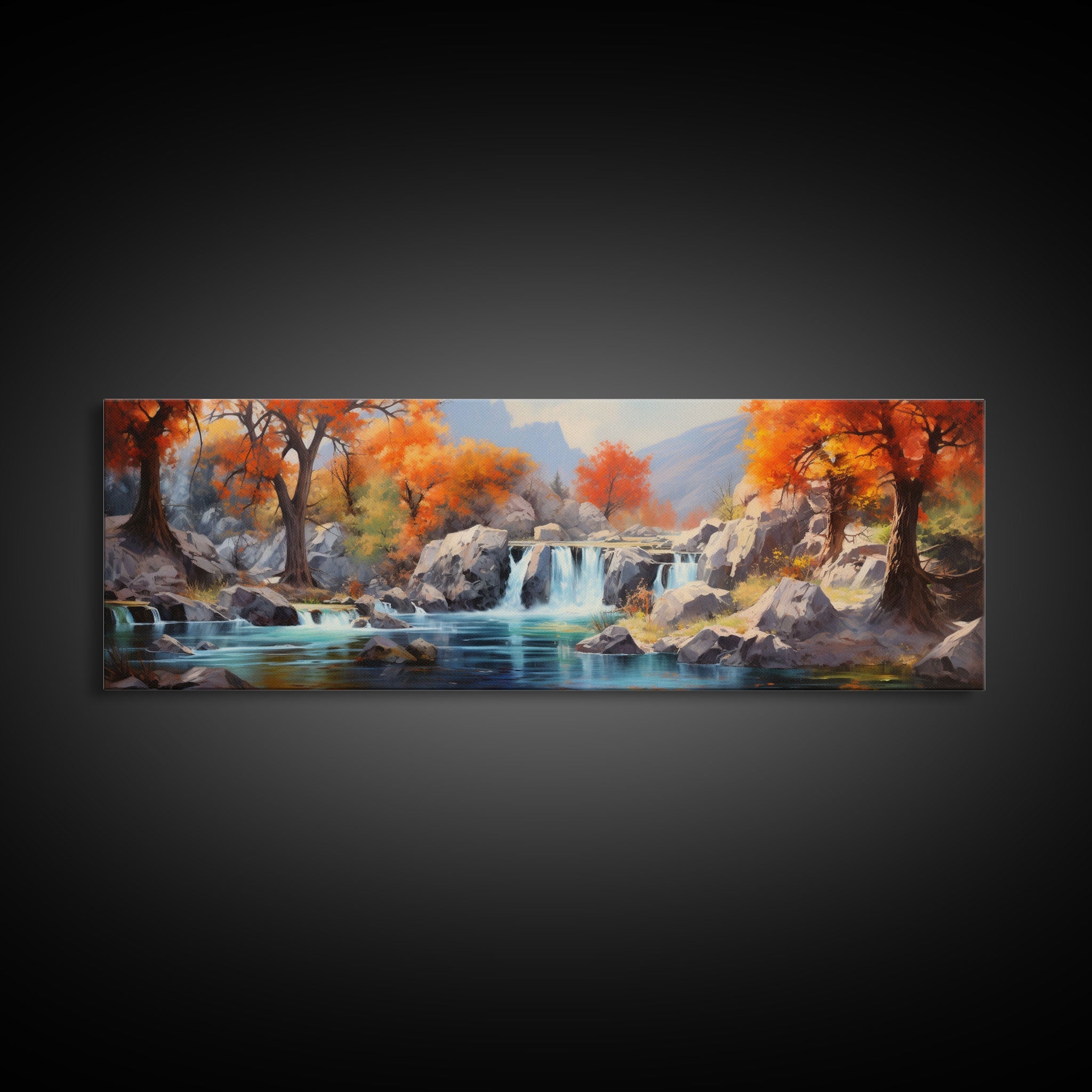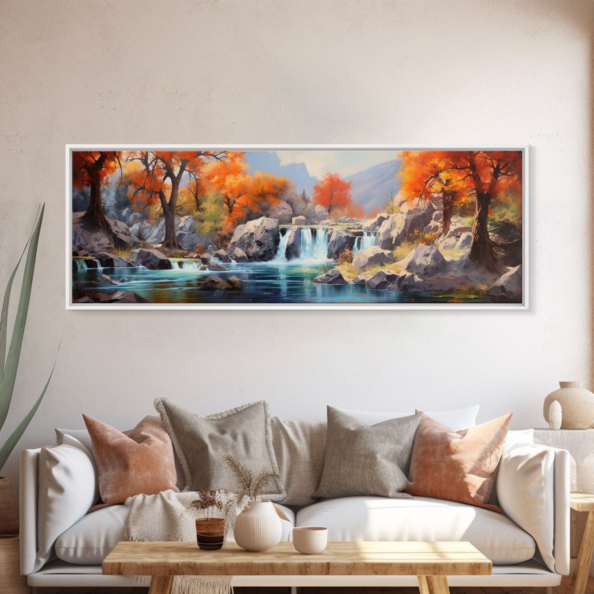 Beautiful Fall Centerpiece Wall Art, Framed Canvas Print, Autumn Landscape Watercolor Painting, Minimalist Boho Style Wall Art, Minimalist