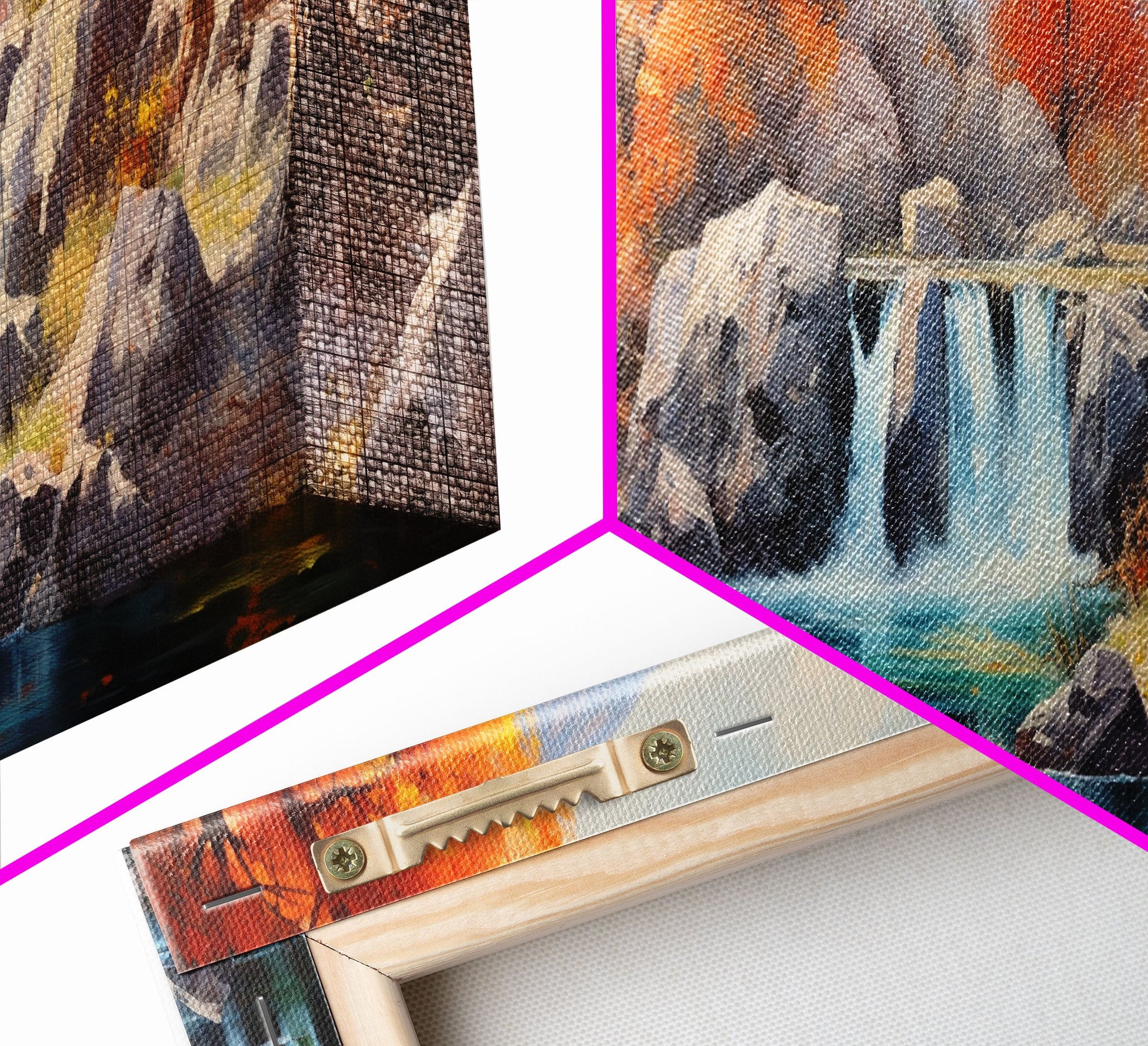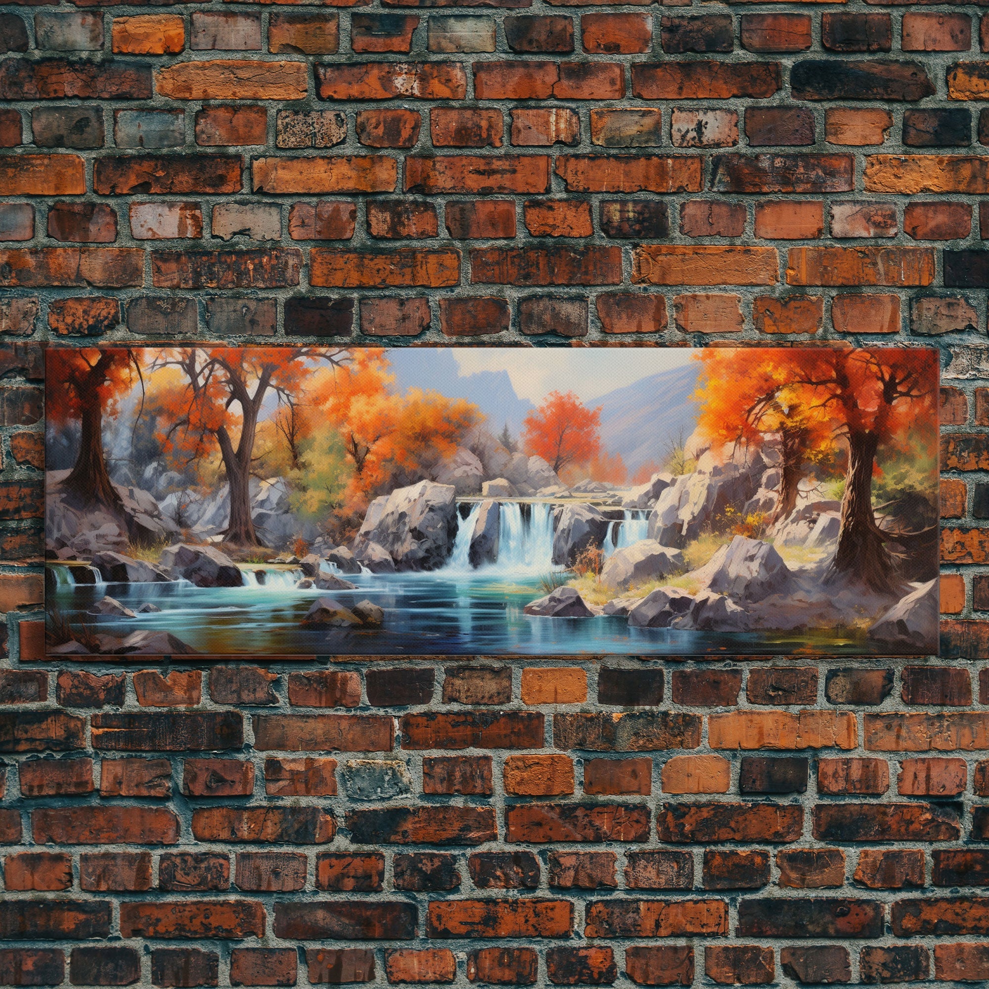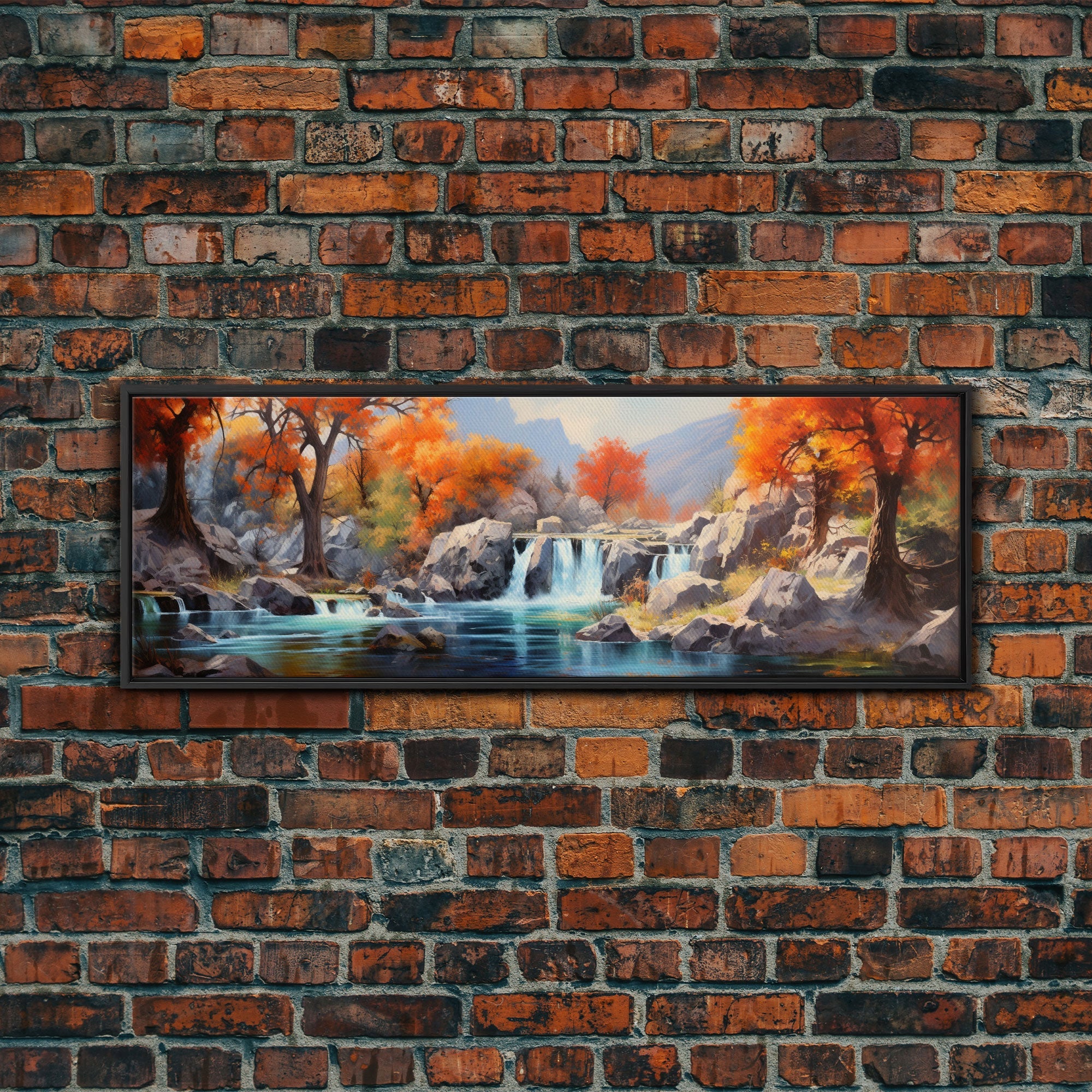 Beautiful Fall Centerpiece Wall Art, Framed Canvas Print, Autumn Landscape Watercolor Painting, Minimalist Boho Style Wall Art, Minimalist